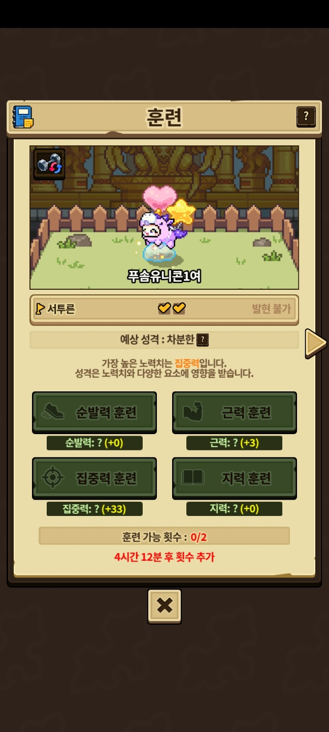 ‘서투른’ 성격작을 하고 있던 도중에, ‘성실한’ 성격을 제외하려고 다른 훈련을 진행했는데요.