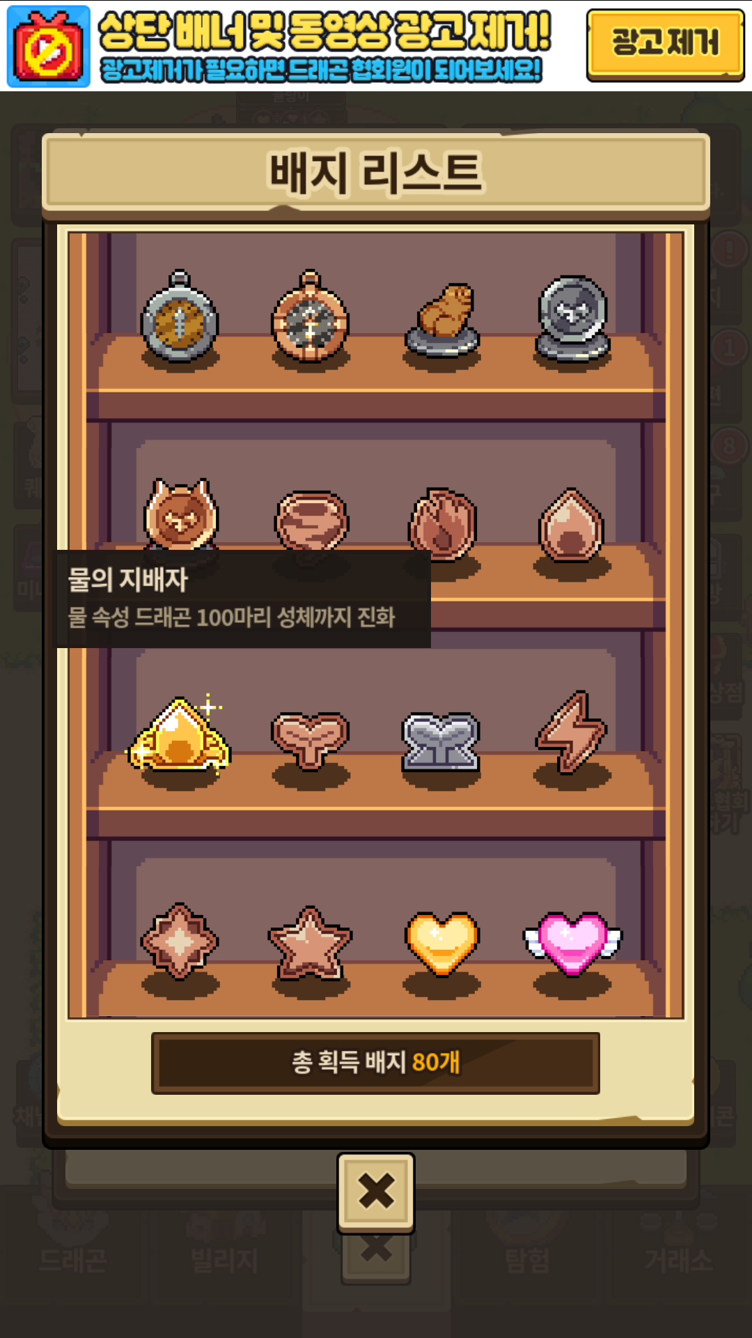 이전까지, 해당 속성 드래곤 50마리 성체까지 진화 업적은 50마리가 은색 배지였으나, 물속성만 유일하게 금색 배지(100마리 달성 보상)를 지급해서 일관적이지 않았습니다.