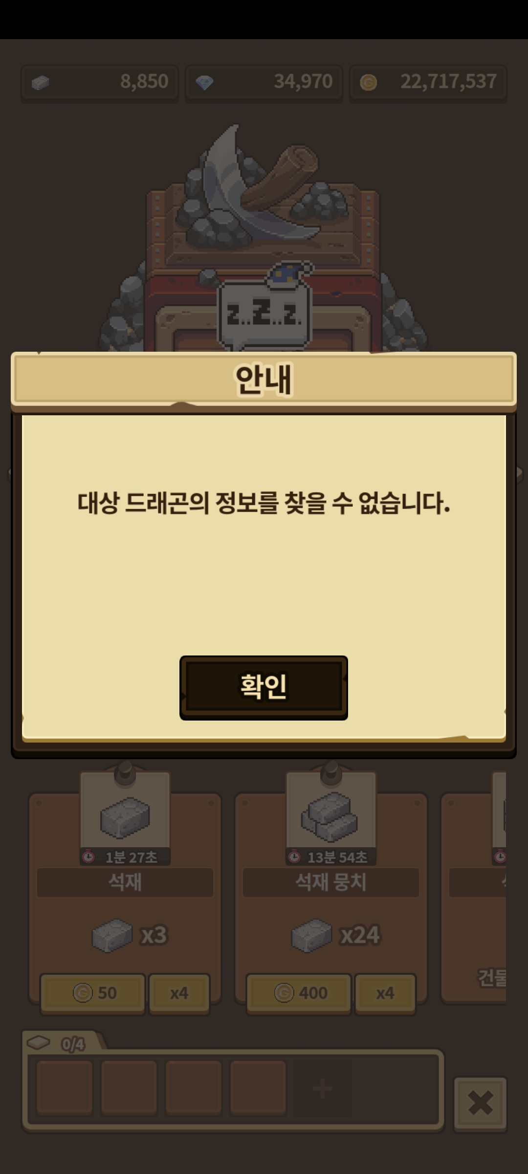 몇몇 드래곤들이 생산시설에 넣어두면 이런 문구가 뜨면서 물품 생산을 못합니다 나갔다 들어와도 그대로에요