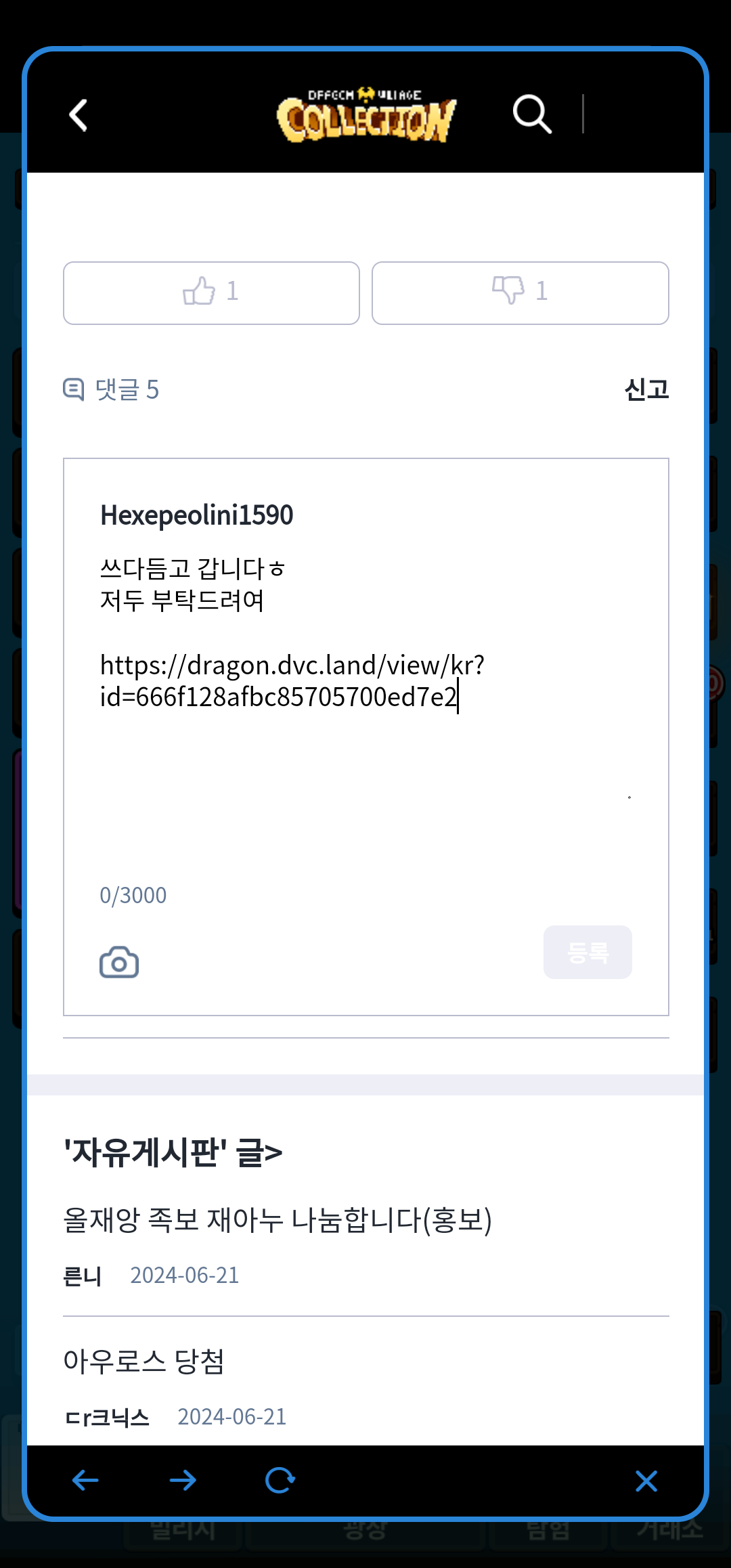 위와 같이게임에서 커뮤니티 접속하고 댓글을 등록하려고 하면 등록이 안됩니다