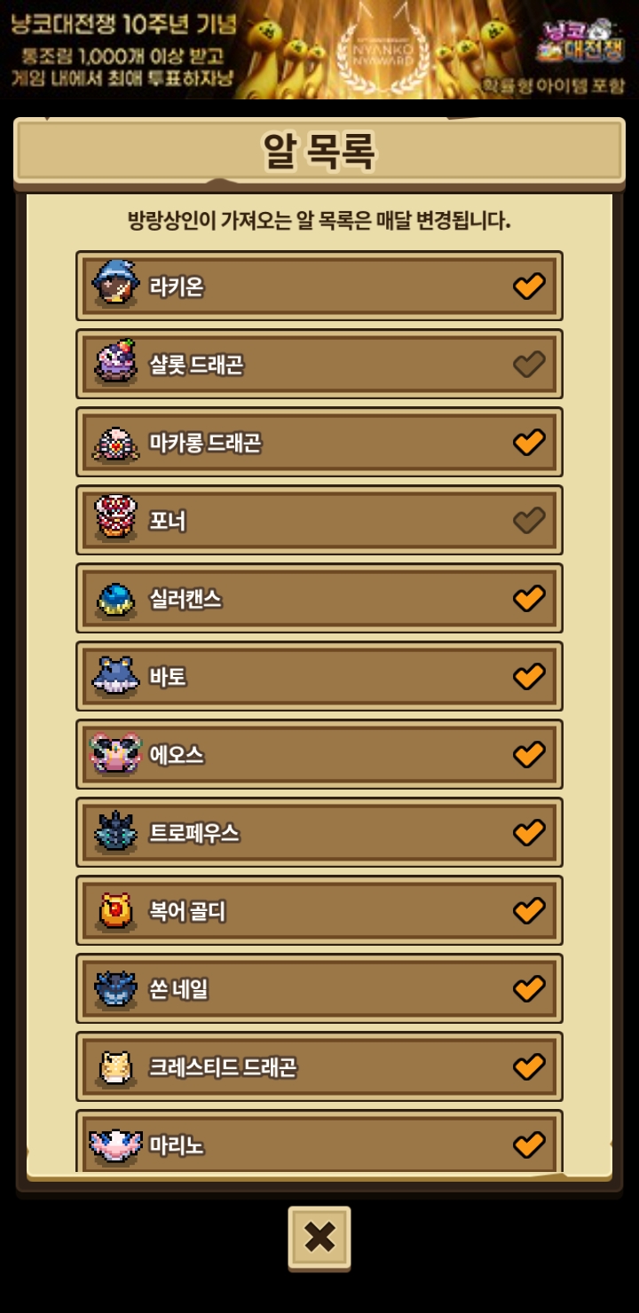 버그리포트 방랑상인 알목록의 알들이 깨져있습니다 Emphorini4771 2024-07-06 03:06 108 1 공유 공유 URL 복사 페이스북 왓츠앱 카카오톡 라인 레딧 닫기 공유 0 1 댓글 1 삭제 이미지첨부 0/3000 등록