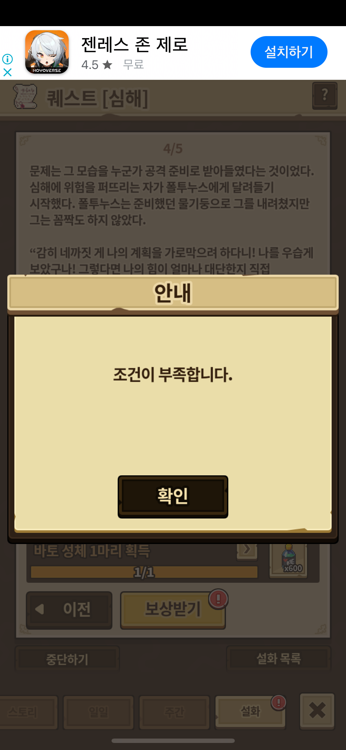 퀘스트에 맞게 조건을 완료했고, 퀘스트도 되었다고 칸에 뜨는데 정작 누르면 조건이 부족 하다고 뜹니다. 다음 퀘를 못하고 있어요.