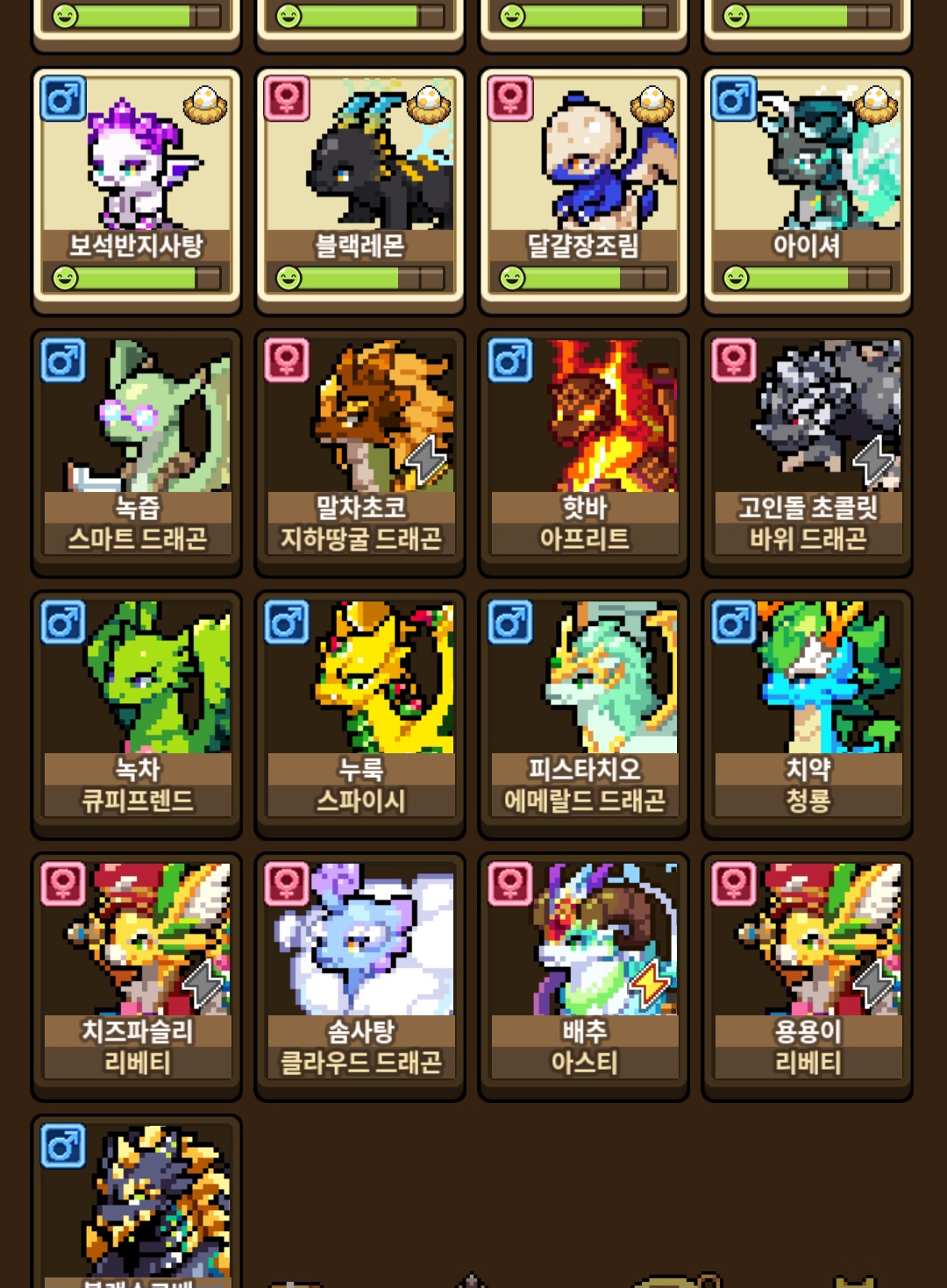 대충 세어봐도 이름 지은 애들이 9마리는 족히 넘어가고 다 합치면 21마리 정도 이름이 지어져있구요 거래소 이용 등으로 지우고 다시 이름 지은 것들도 포함하면 꽤 될텐데 이름 변경은 업적 카운팅은 9번밖에 안되어있네요..