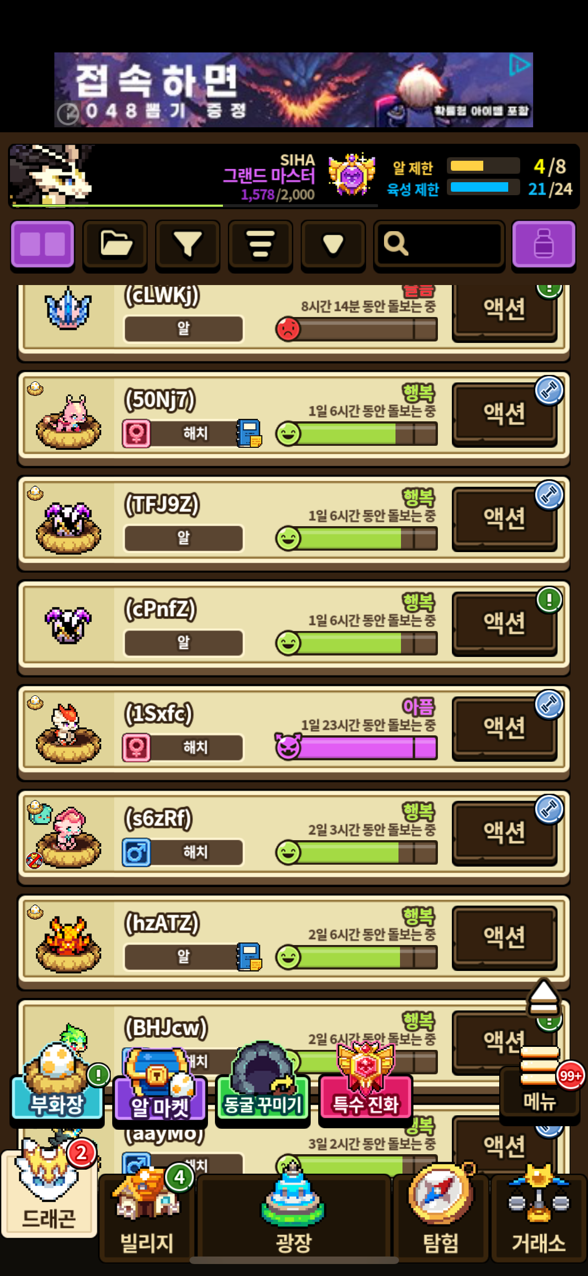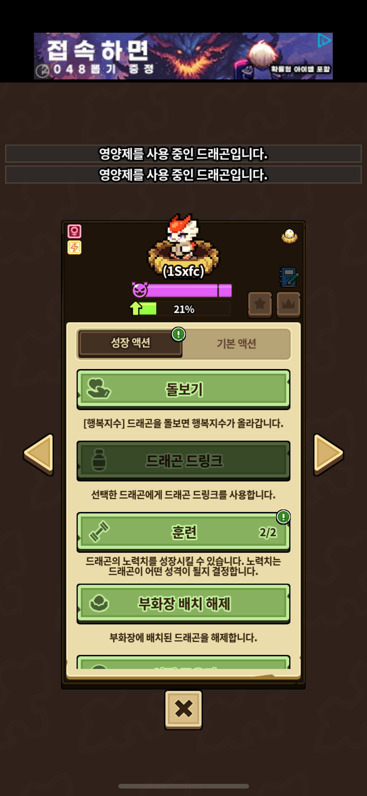 영양제 먹여서 키우고 있고 돌봄 한번도 안 했는데 질병 걸렸어요… 버근줄 알고 한참 뒤에 다시 접속해봤는데 그대로네요