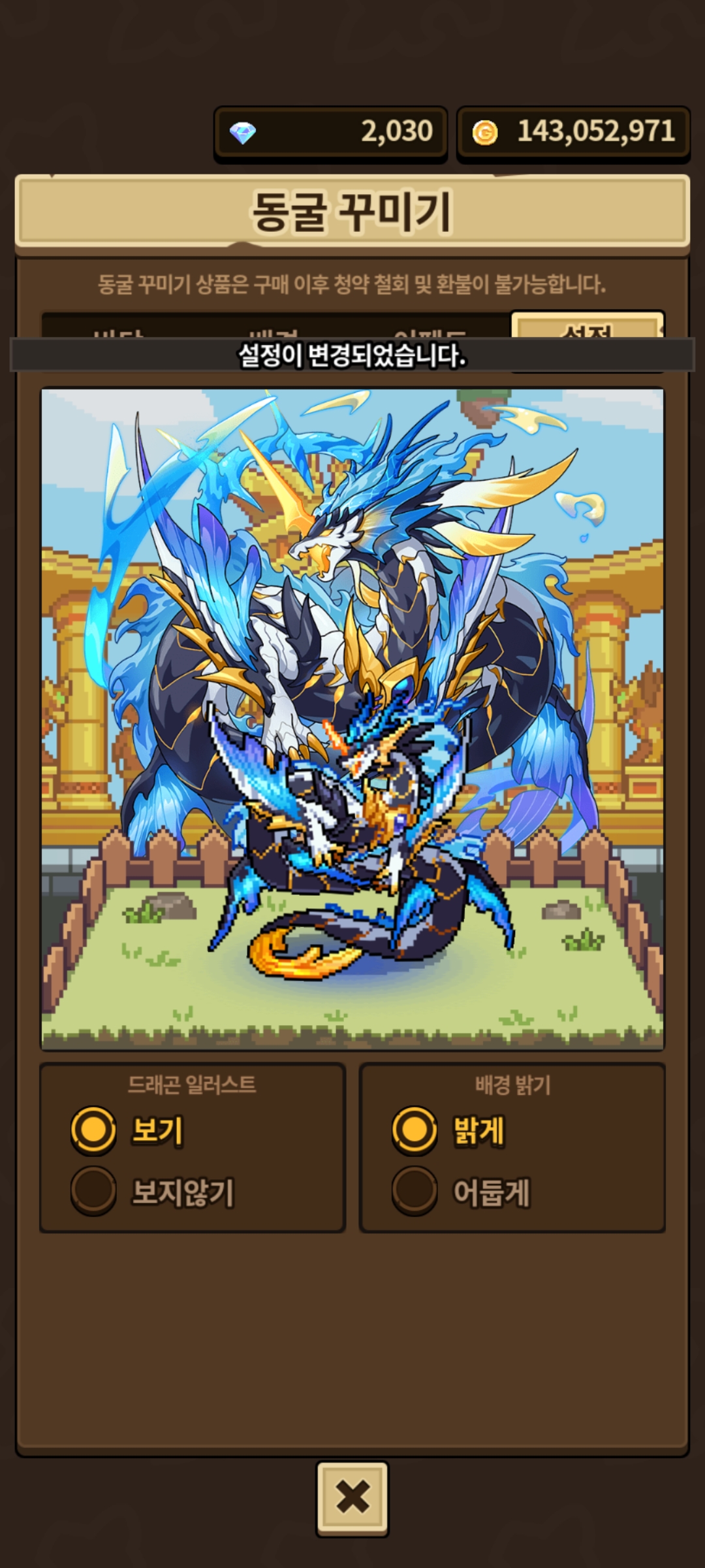 전체 배경이 밝게 적용이 안돼는데 원래 안돼나요? 바꾸고 드래곤 들어가보면 적용이 안돼있고 직접 한마리한마리 바꾸는거만 배경이 적용이 안돼는데 원래 안돼는건가요? 아님 제가 잘못 한건가요?