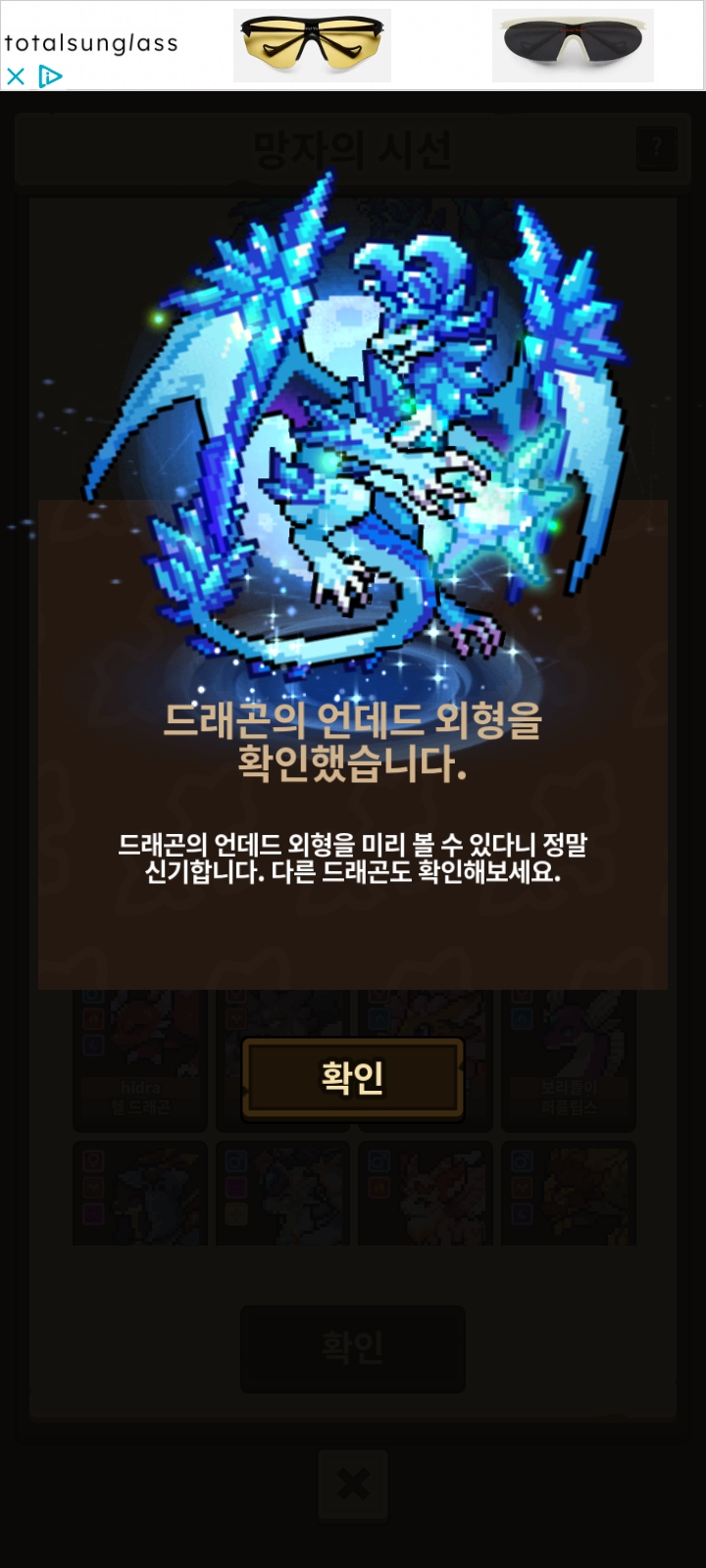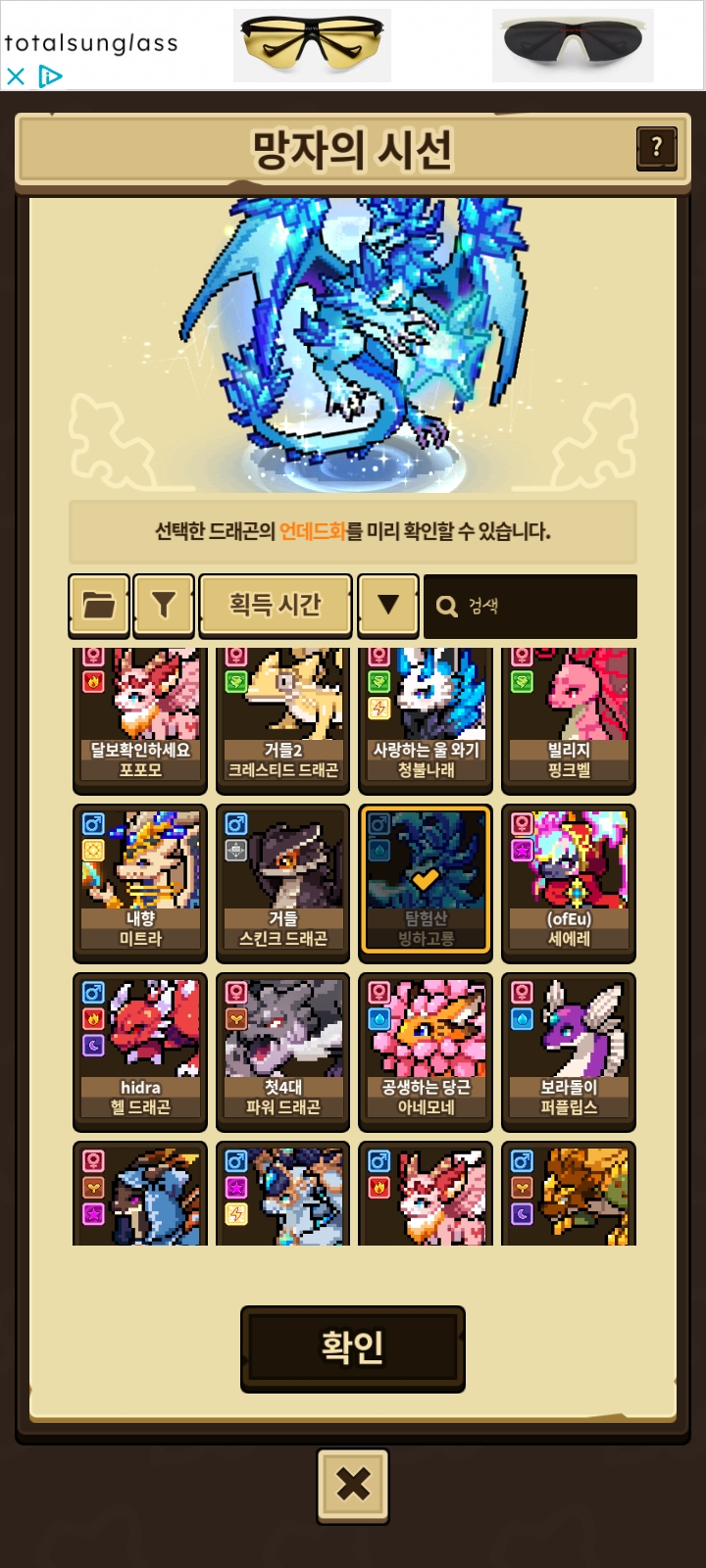 특수진화 한 드래곤이 망자의 시선 결과 화면에서 언데드로 나타나지 않네요. 다른 특수진화 드래곤들로 해도 다 똑같아요
