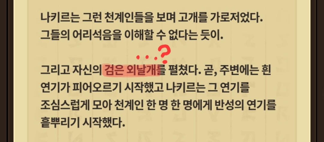 나키르는 흰 색상의 용인데 스토리 내에서는 검은 외날개라고 잘못 표기되어 있네요