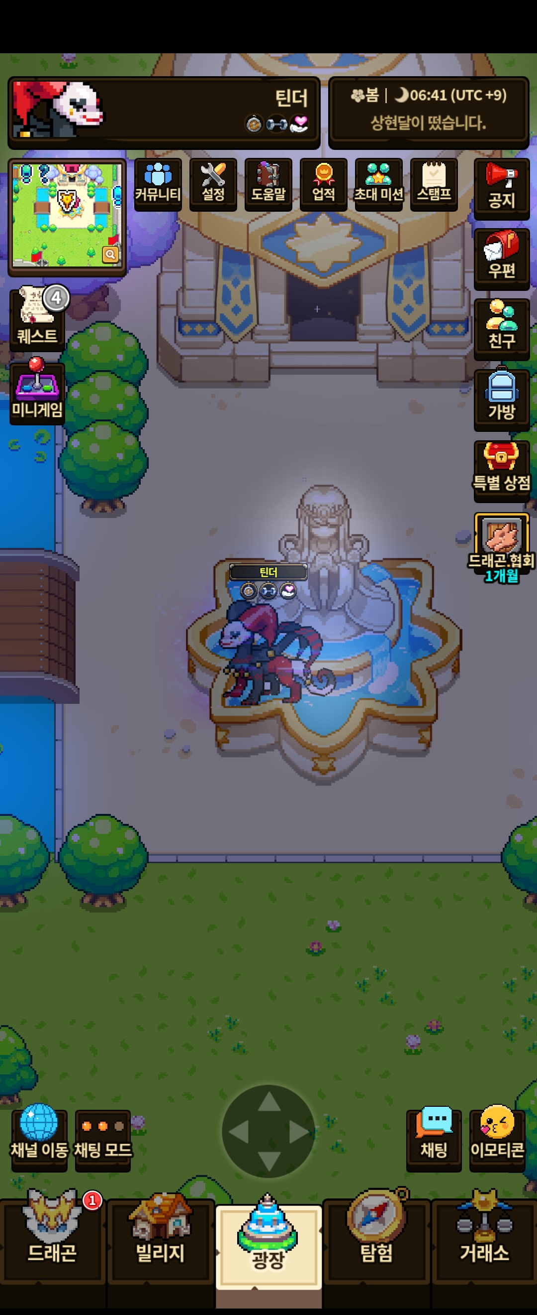 자다가 일어나서 알키우고 일일상자 뽑을려고 광장 들어가니 저렇게 분수대에 껴있어요. 못나와요.