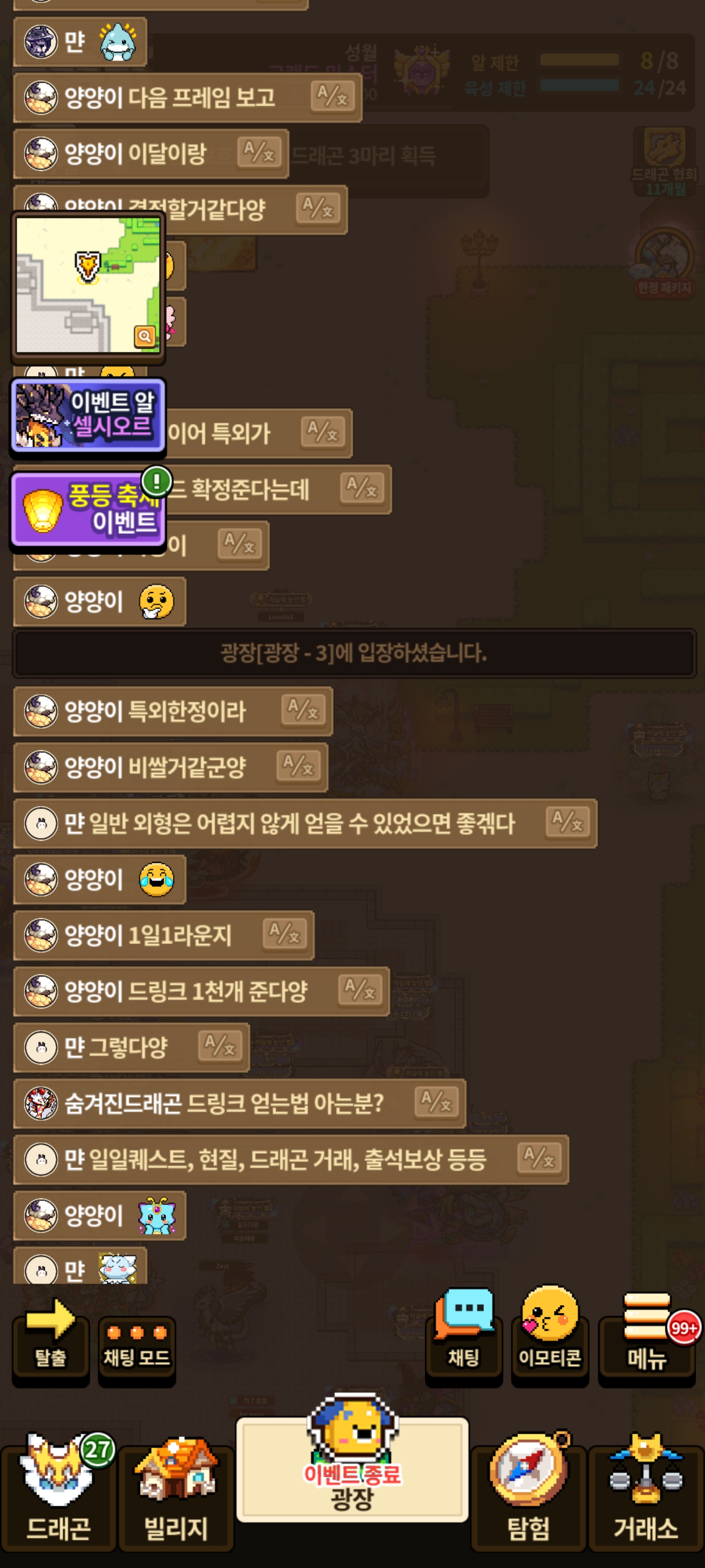 채팅 보는데 미니맵하고 이벤트 텝이 글을 가려요.