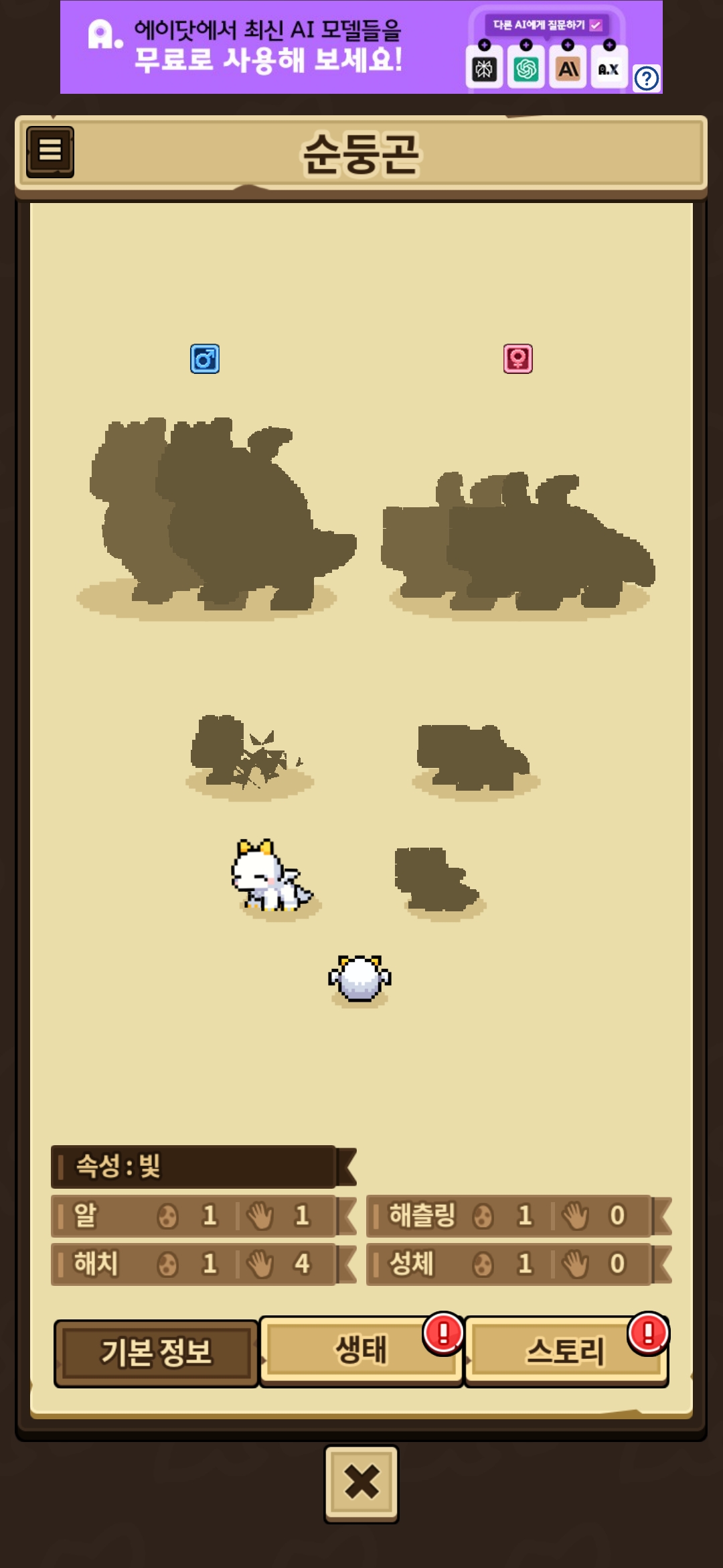 암컷은 멀쩡한데 순둥곤 수컷도트가 깨져있어요