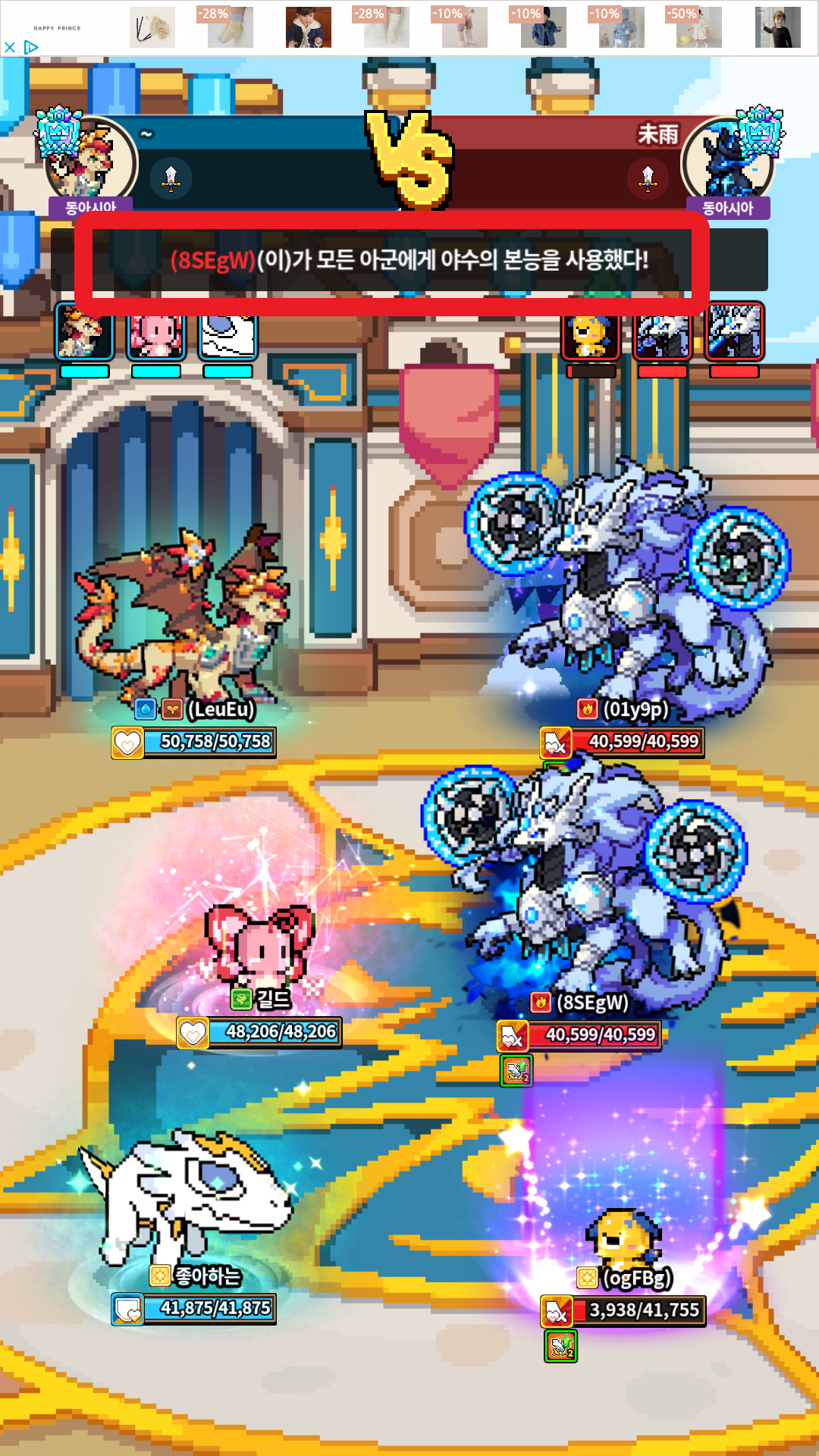 상단 빨간 박스 안, 전광판(?)에 스킬을 사용하거나 공격을 하거나 행동을 하면 그에 맞는 설명이 뜹니다.