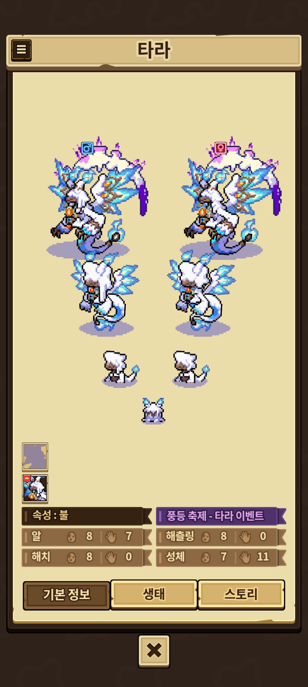 다른 이벤트 드래곤들 (크리마용, 호저리, 아이리스)같은 경우에는 기본 외형으로도 전문가 배지를 받았으나 타라만 받지 못한 상태입니다.