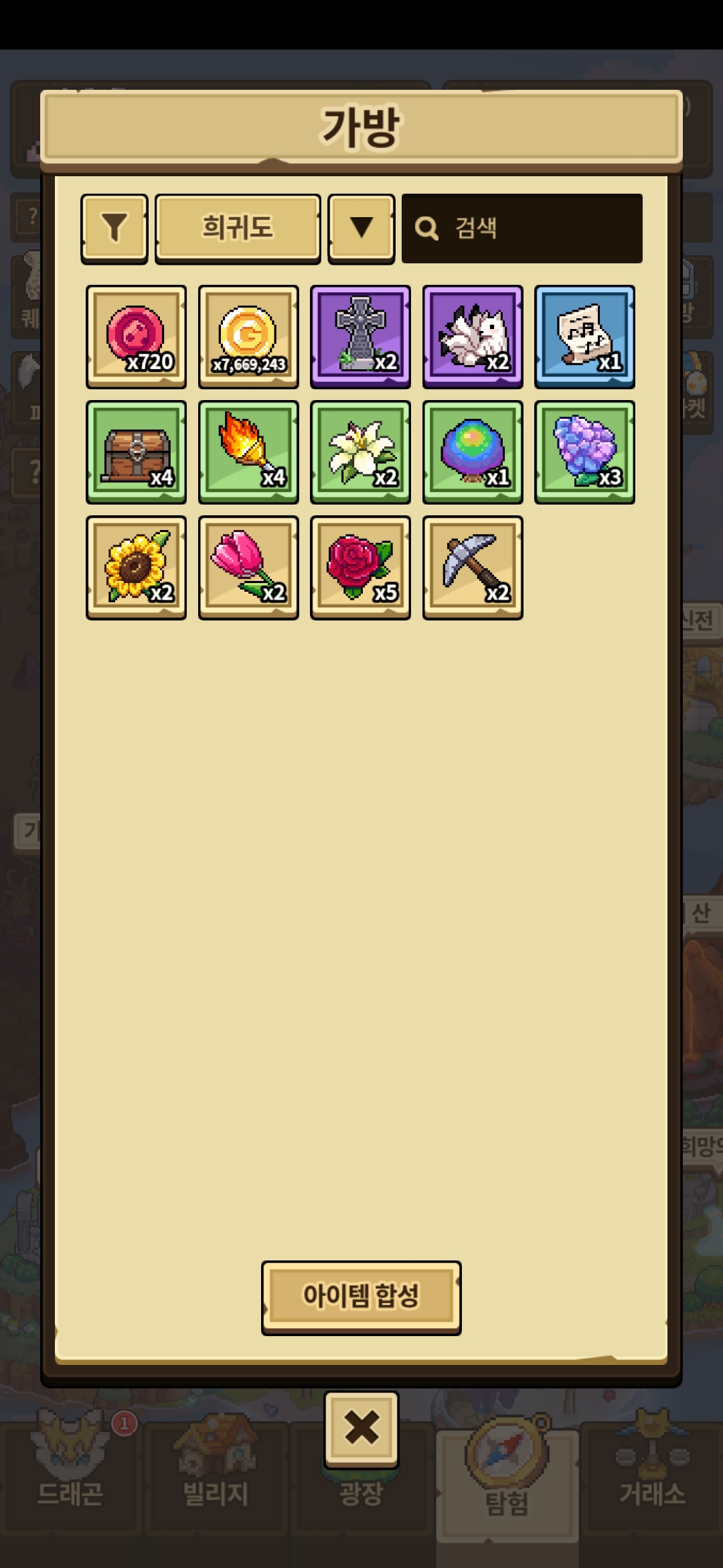 가방에는 무지개 나무가 뜨는데 합성창에는 무지개 나무가 안떠요 무지개 나무는 합성불가템인가요?
