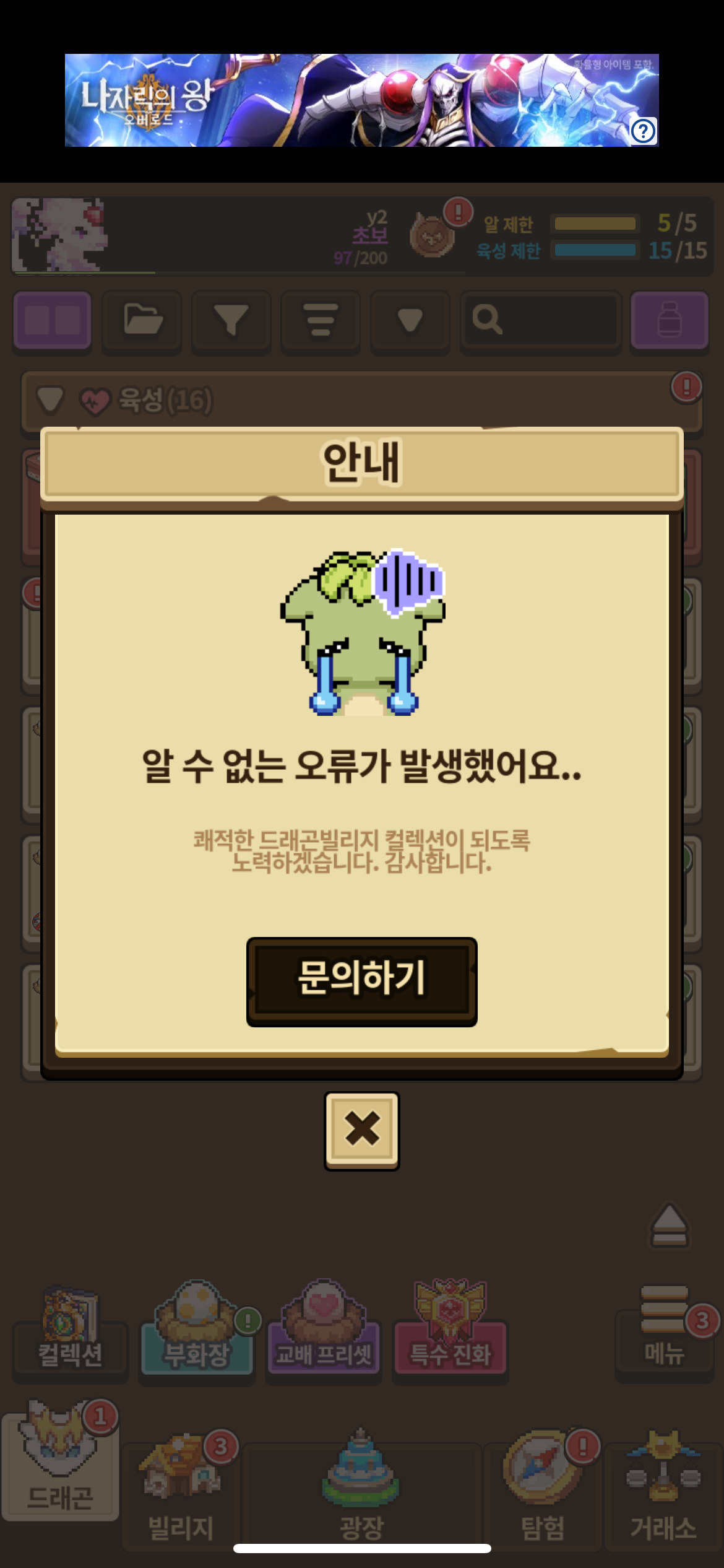 두시간째 계속 드래곤 육성하는 곳만 들어가면 이상태네요 ..ㅜ 어떻게 안되나요 너무 답답해요