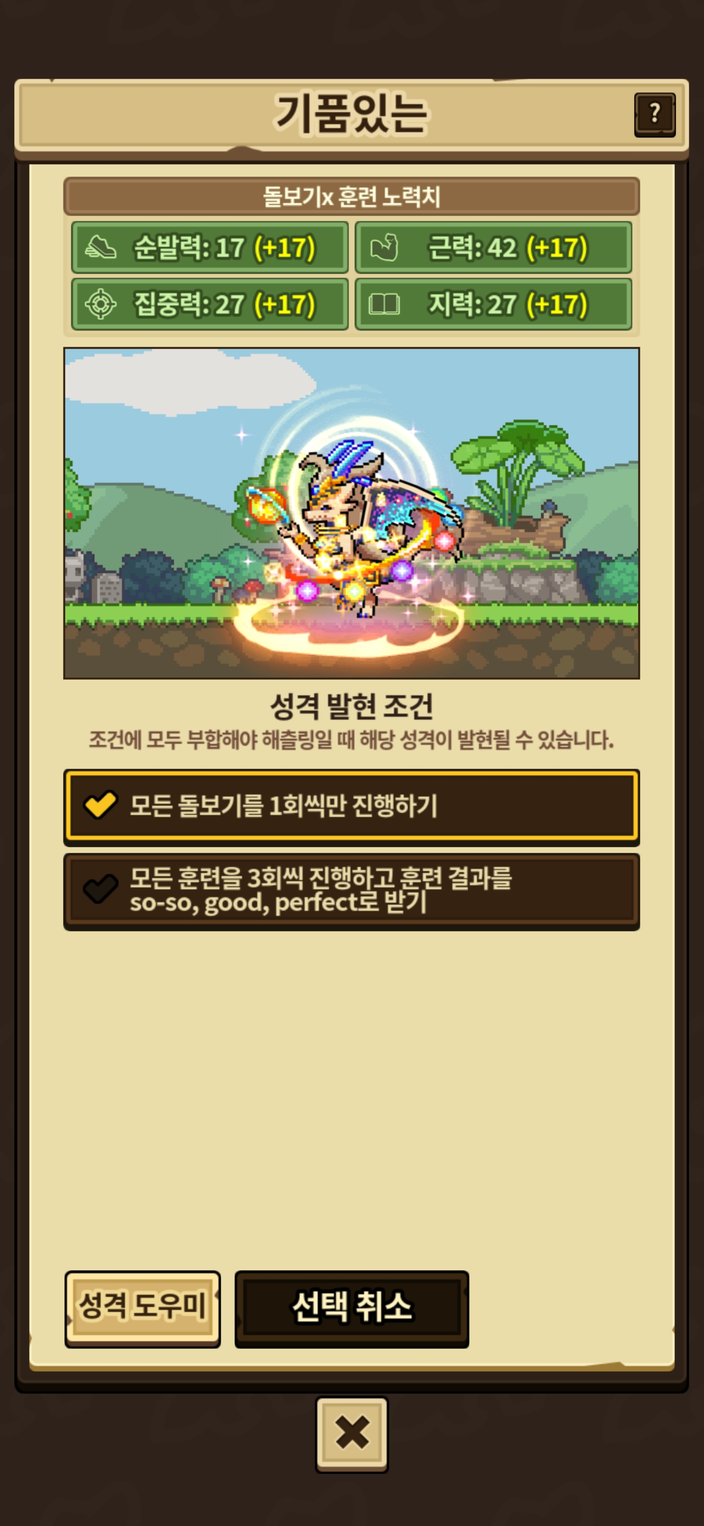 기품작 훈련 다 끝났는데 체크가 안됩니다. 전부 3회씩 +17 했는데 왜안되죠?