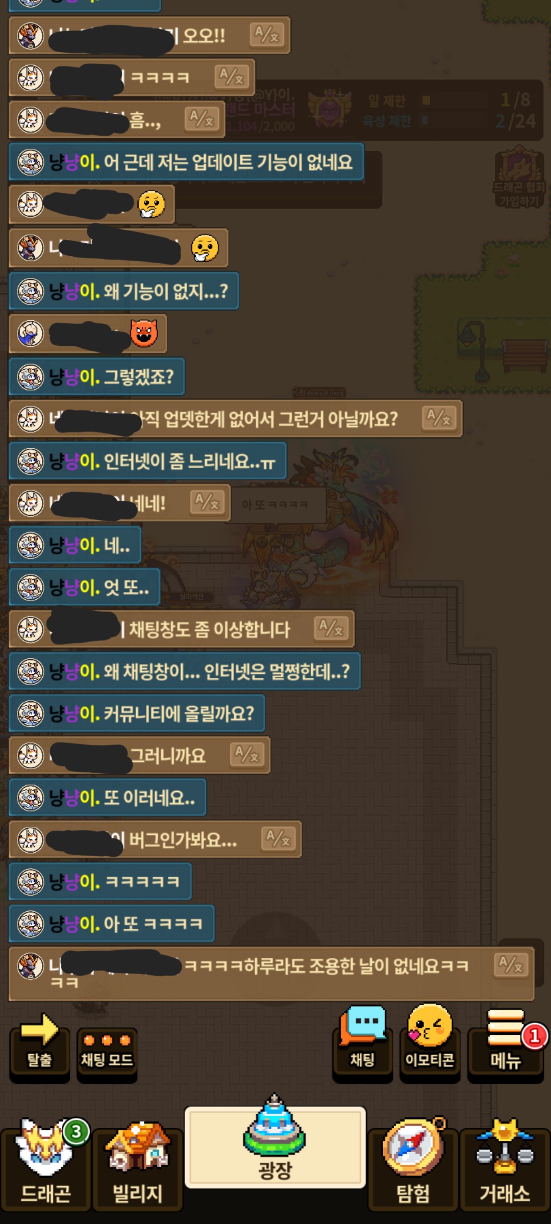 채팅이 좀 느린 것 같아요 인터넷은 멀쩡해요