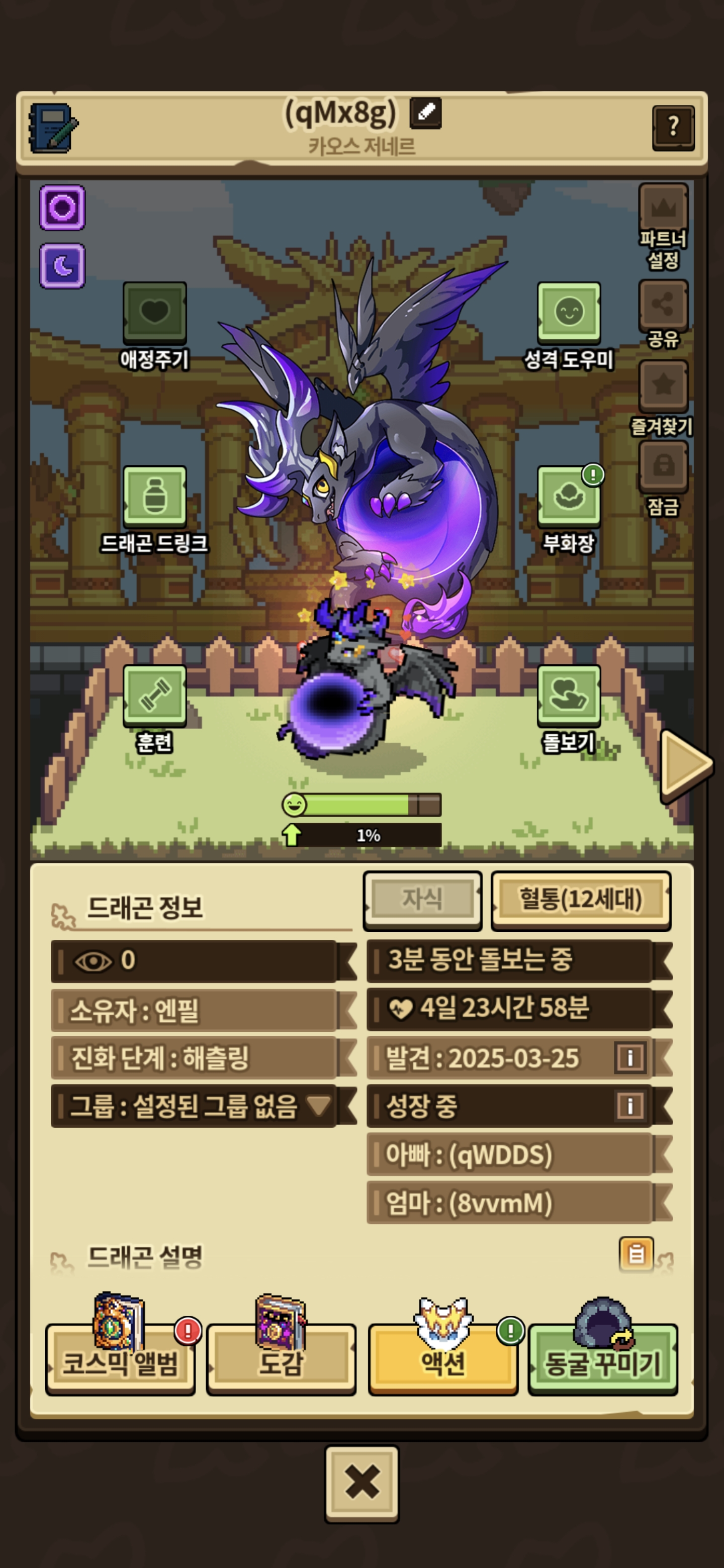 약 800개에 달하는 드링크 사용후 성장도가 1%로 돌아가는 버그 발견.