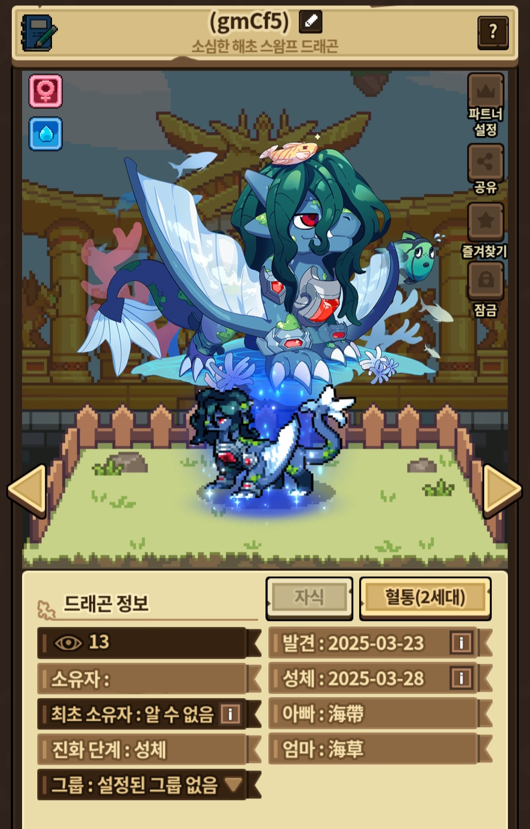 해초 스왐프 드래곤 성체 1마리를 요구하는 퀘스트가
