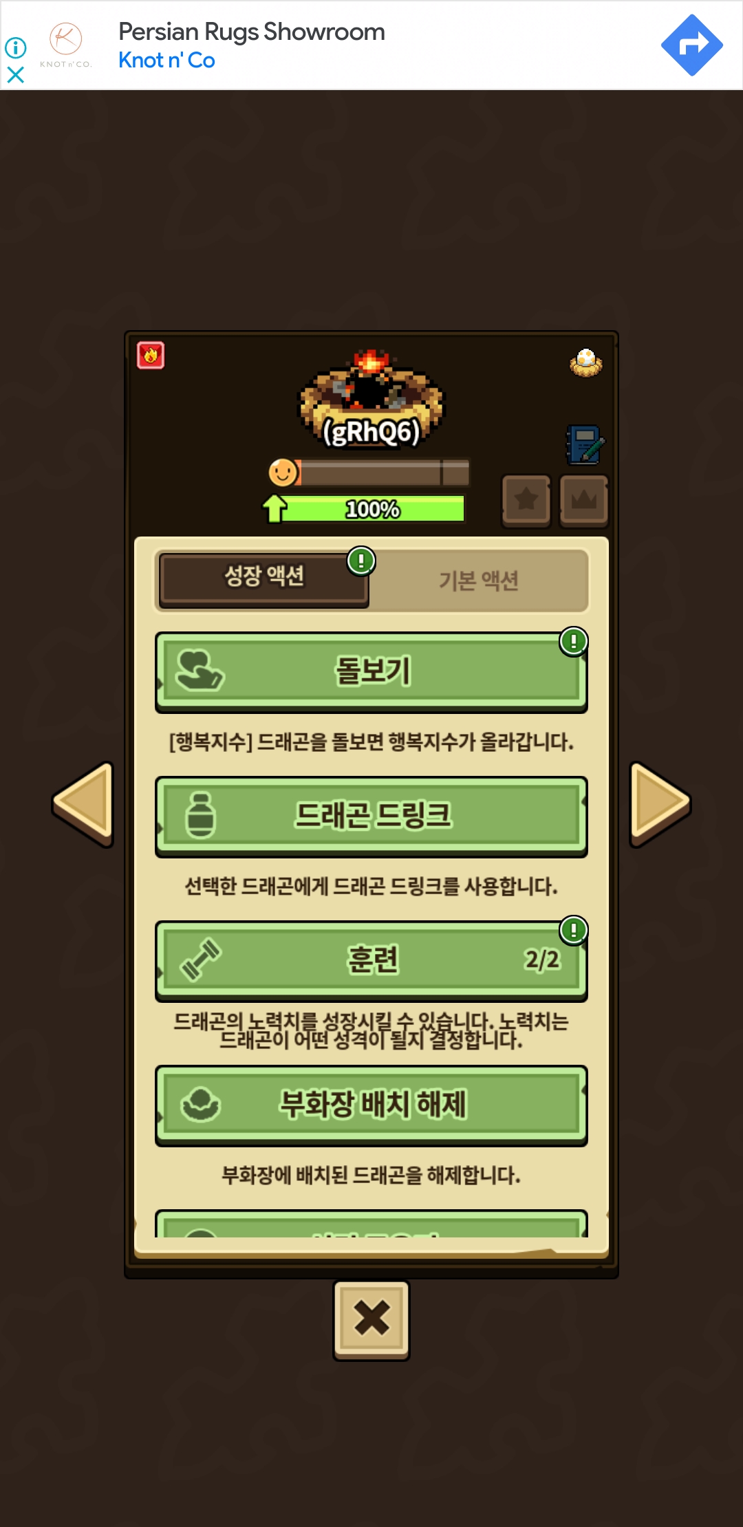 - 첫 번째 버그는 성장도가 100이 되었는데도 진화가 되지 않는 버그에요. 보호소에서 데려와서 그런건가요? 지금도 진화가 안 되고 있어요.