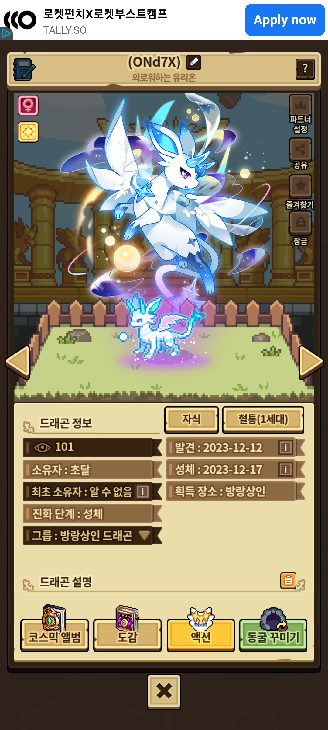 성체 유리온(암컷) 일러스트가 균형외형으로 표시됩니다.