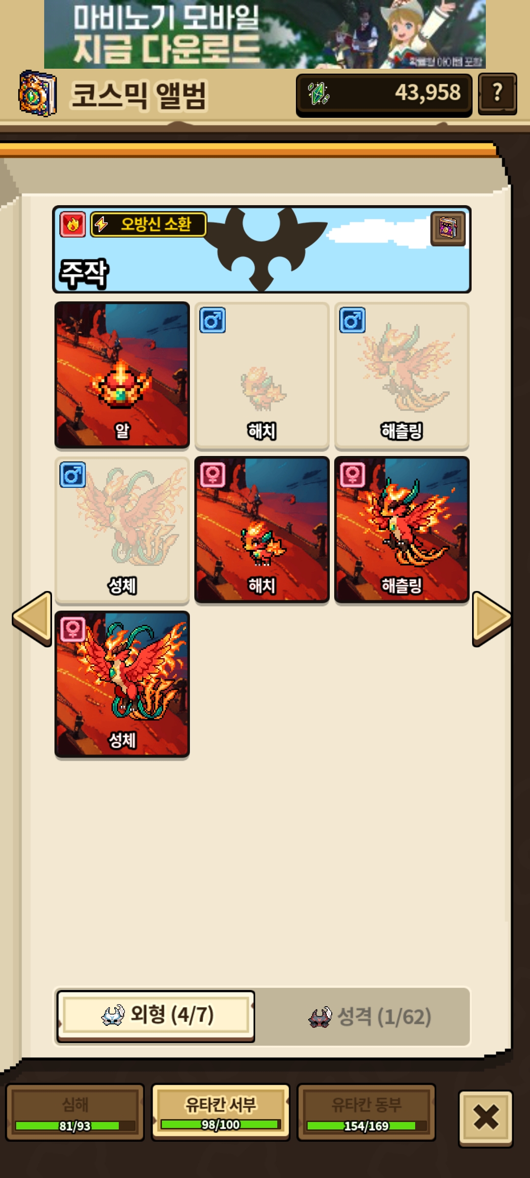 안녕하세요. 코스믹 앨범에서 주작 일러스트가 안 보이는 상태가 발생해서 혹시 버그일까 해서 문의 드려봅니다.