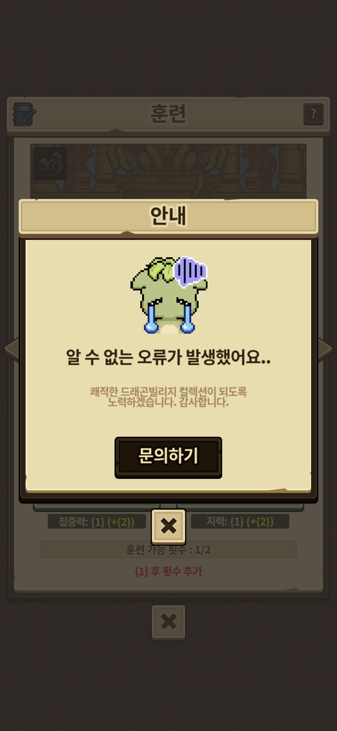 신규 백호 수컷 훈련창에만 들어가면 저게 뜨면서 재접하라고 합니다.