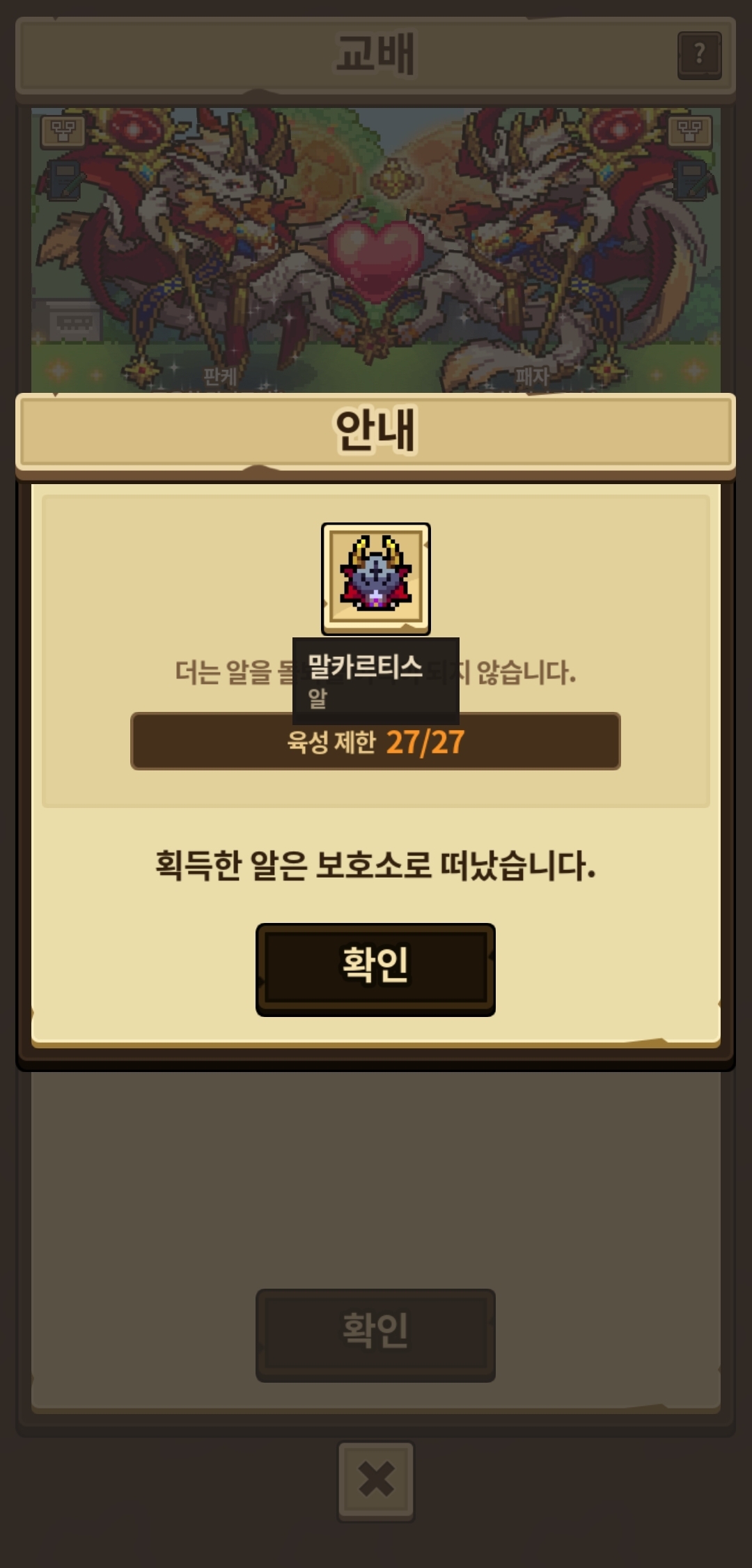 로딩창이 뜨더니 다른 외형끼리 교배한 특수외형 알이 갑자기 자동으로 보호소에 가네요