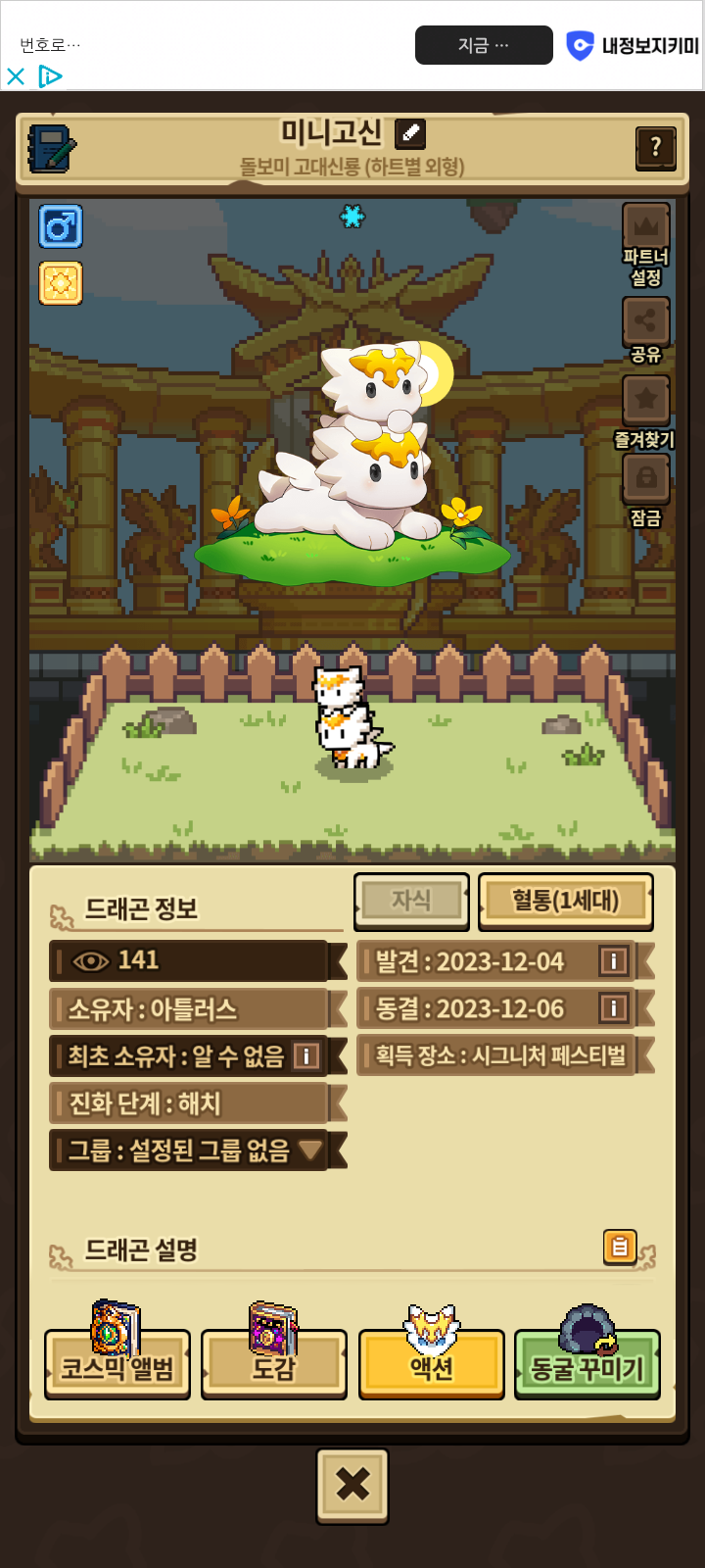 이번에 깨비장터에서 돌보미 고신 동결을 샀는데,며칠이 지나도 코스믹 앨범 및 일반 도감에서 미획득이라고 계속 뜨네요.