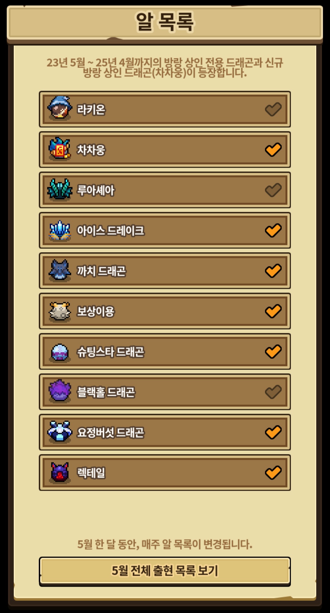 하늘색 마카로 칠해둔 용들이 알 목록에서 생략되어 있네요