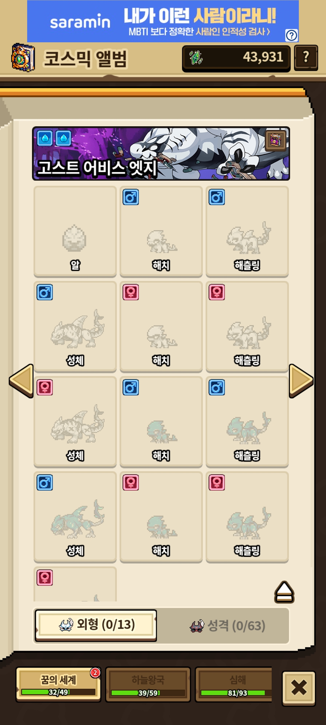 고스트 어비스 엣지가 코스믹 도감에서 물,물 속성으로 뜨는 버그가 있습니다.