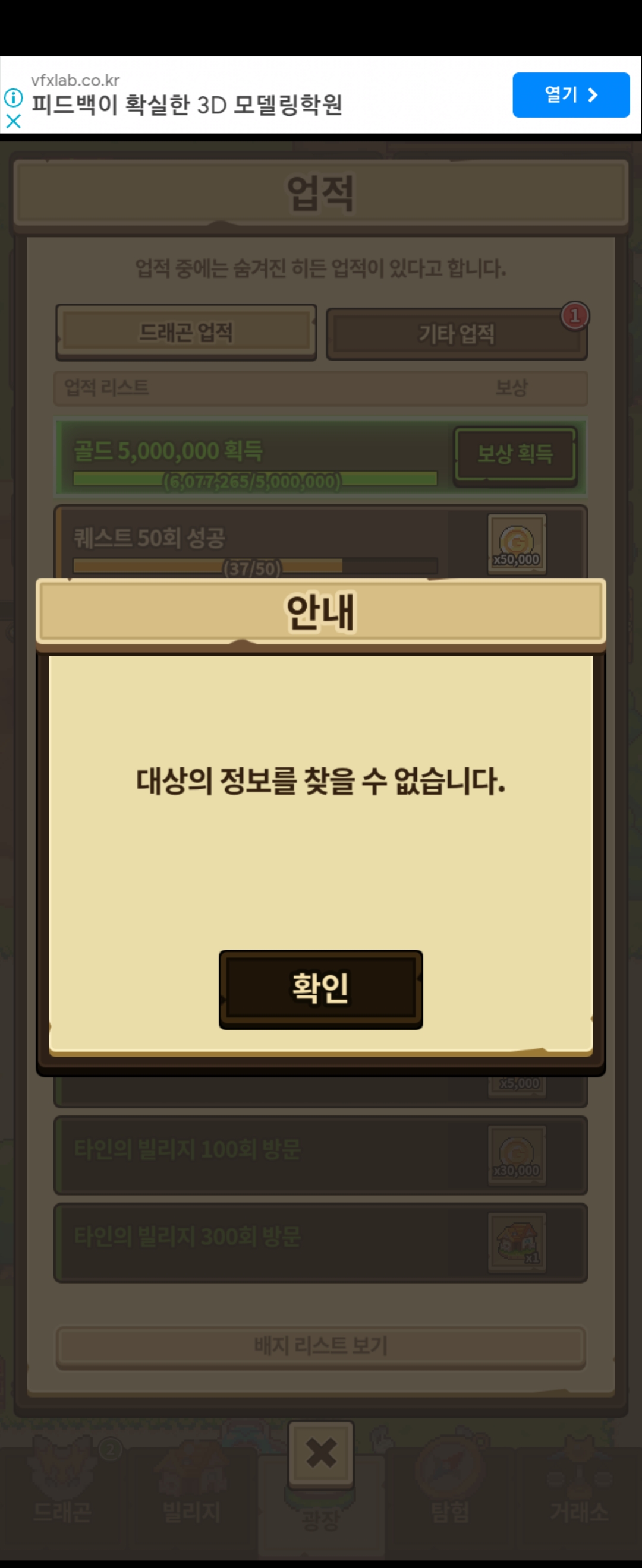 골드 5,000,000 획득 업적 보상 획득 누르니까 사진처럼 뜨네요. 저기서 확인 눌러보니까 X 눌러도 창 안닫히고 그대로 멈추는거같습니다. 확인해주세요!