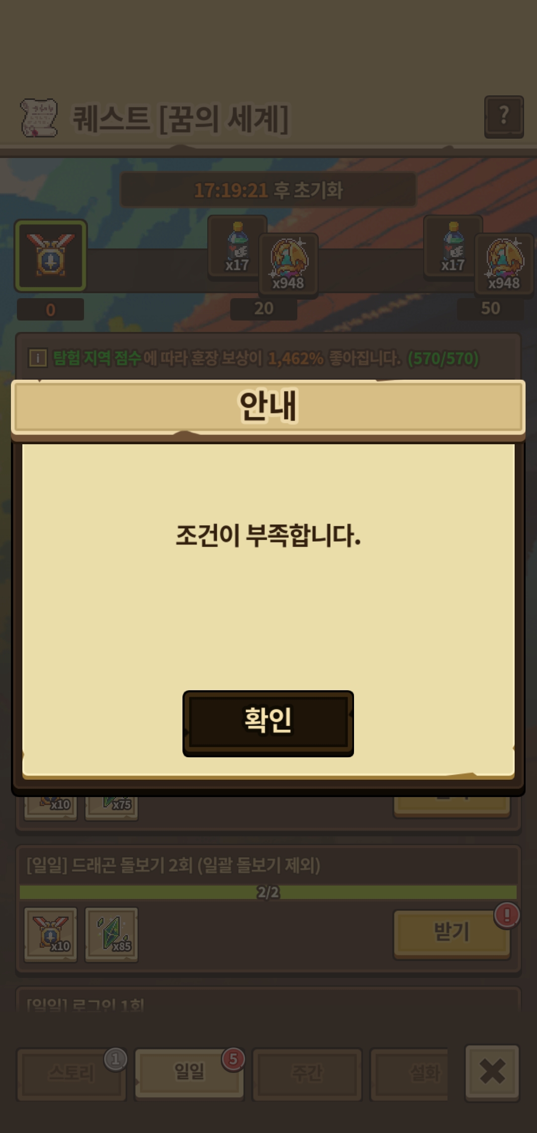 재접속 해보니 일일 상자 오류로 인해 일일퀘스트도 연달아 오류거 나는것같습니당