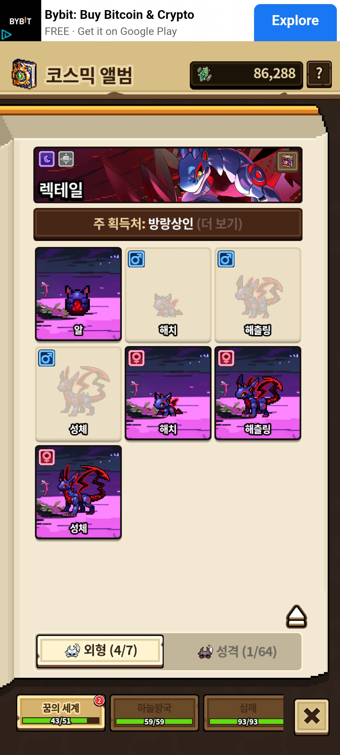 수컷 해치 2마리나 획득했는데도 반영되지 않습니다. 재부팅 해도 동일합니다