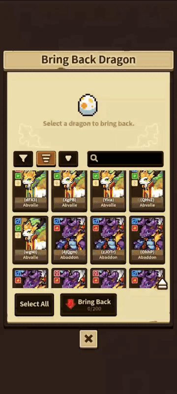 "특수 진화" 또는 "프리즘 진화" 상태의 드래곤을 드래곤 쉼터로 보내면 사라지고 다시 찾을 수 없게 됩니다.