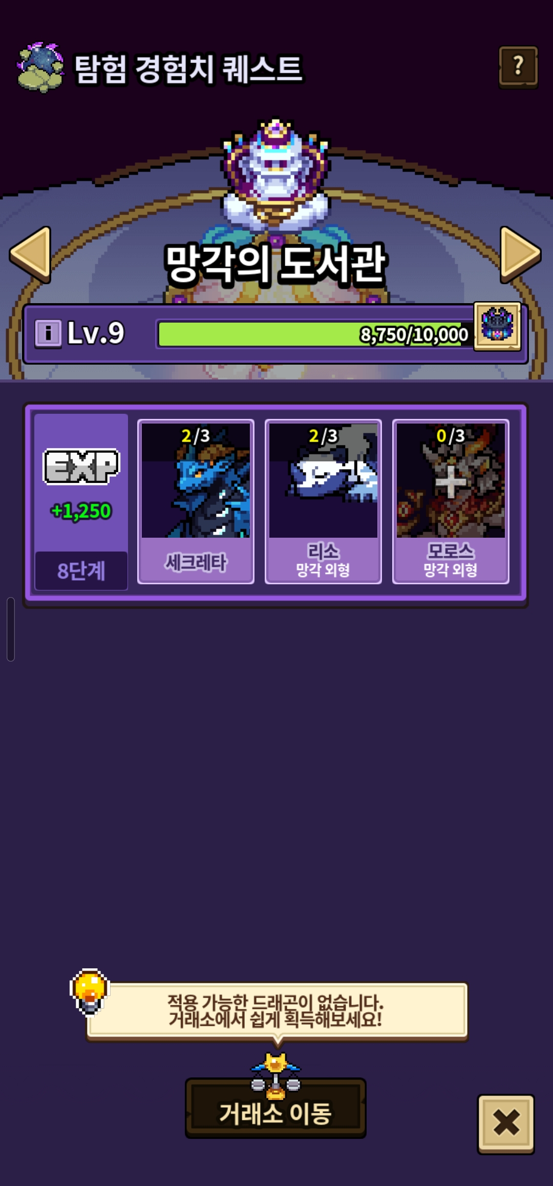 드래곤이 성체로 성장해도 느낌표도 안 뜨고 적용 가능한 드래곤이 없다고 떠요ㅠ 당연히 1세대고 다른 용들도 성체로 성장 시켜봤는데 아무것도 안 뜨네요…