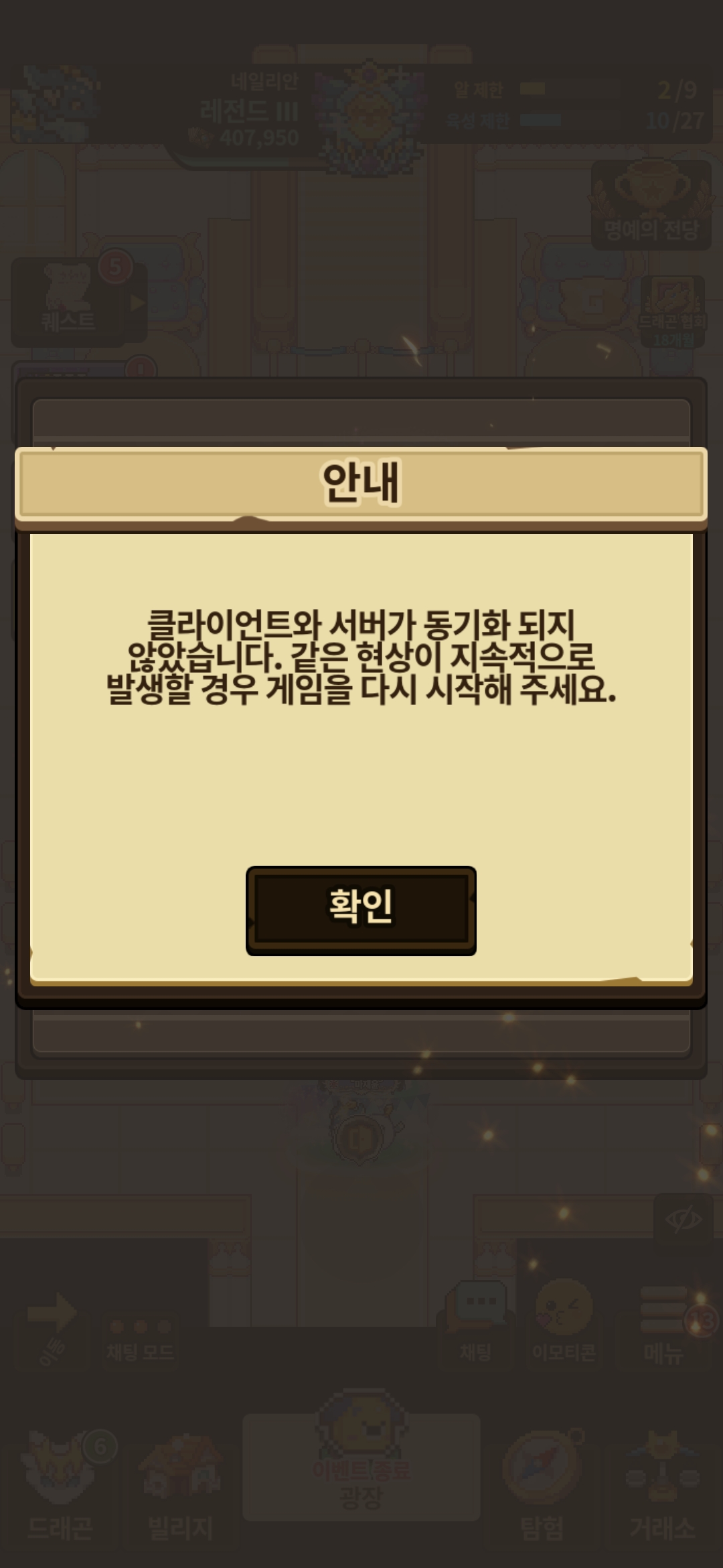 업데이트 이후 라운지 입장시 드링크 수령하기를 누르면 오류메세지가 저렇게 나타나면서 수령이 안되었는데도 이미 수령했다고 뜹니다