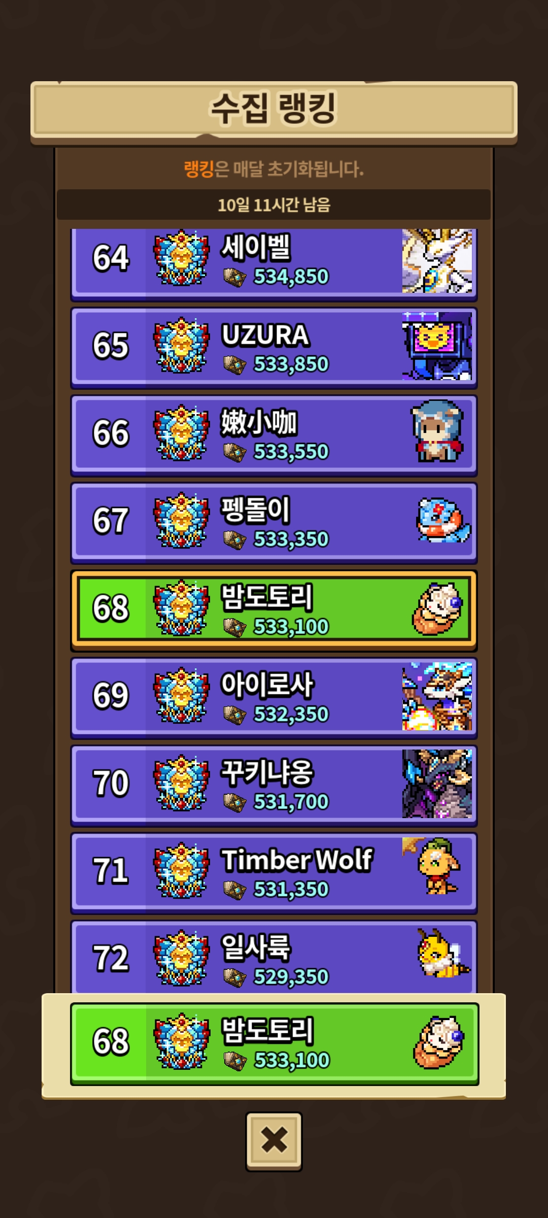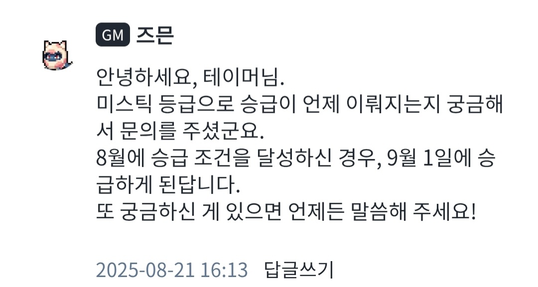 9월 1일에 미스틱등급으로 변경될 것을 기대하였으나 적용되지 않고, 프로필 우측 상단에 위치하던 순위 표시도 사라졌습니다.