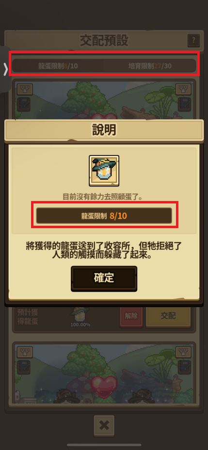 In the game, it shows 10 egg slots and 30 breeding slots, but if there is an available slot and the player breeds, the egg is sent directly to the shelter.