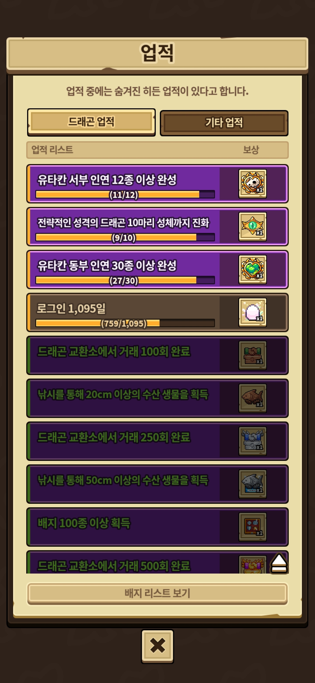 다른 성격들은 드래곤 업적인데 전략적인 은 기타업적으로 들어가있어요~