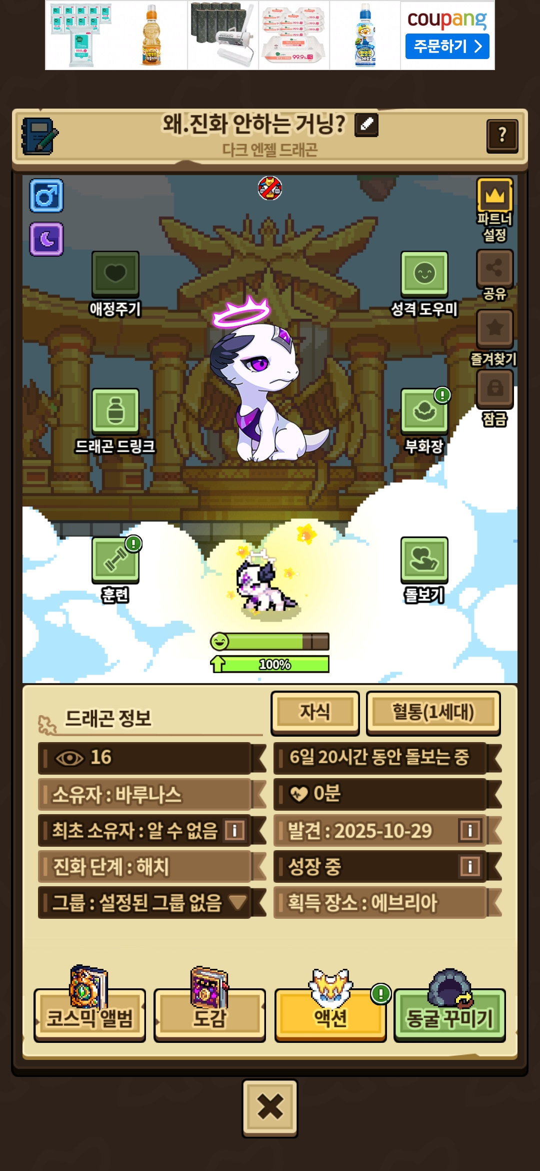근데..해치에서 해츨링으로 만족도가 풀인 상황 인데, 다음 단계로 진화를 안하고,