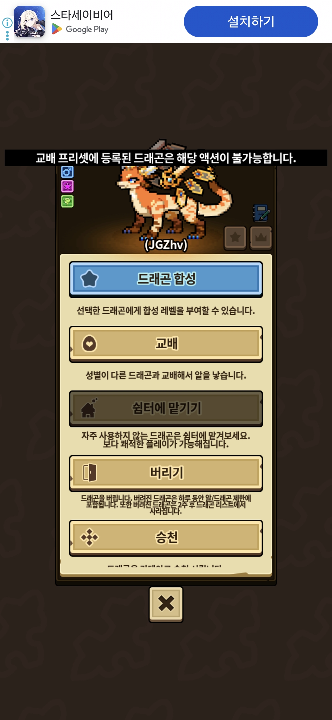 직접 프로필에 들어가면 해당 드래곤은 교배프리셋에 등록된 상태라고 떠요..