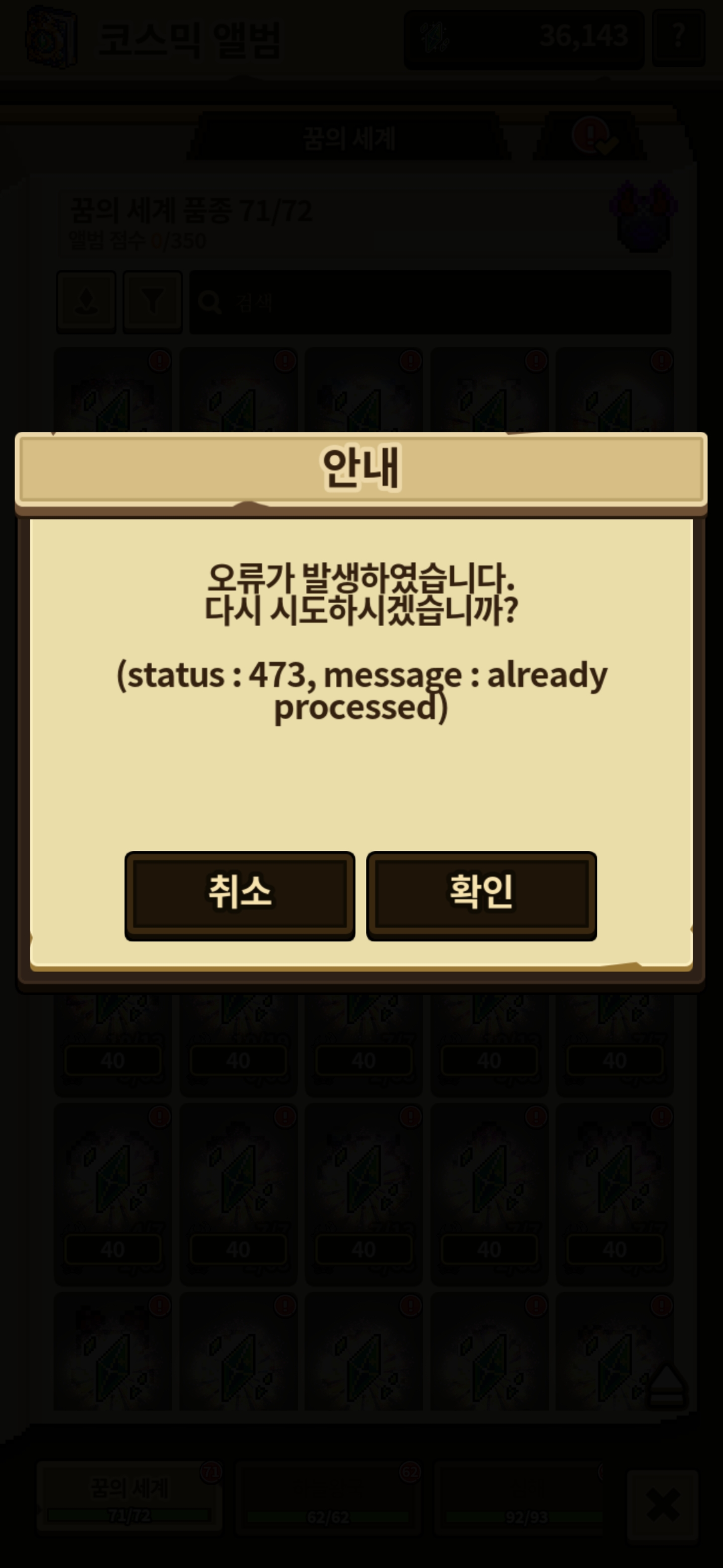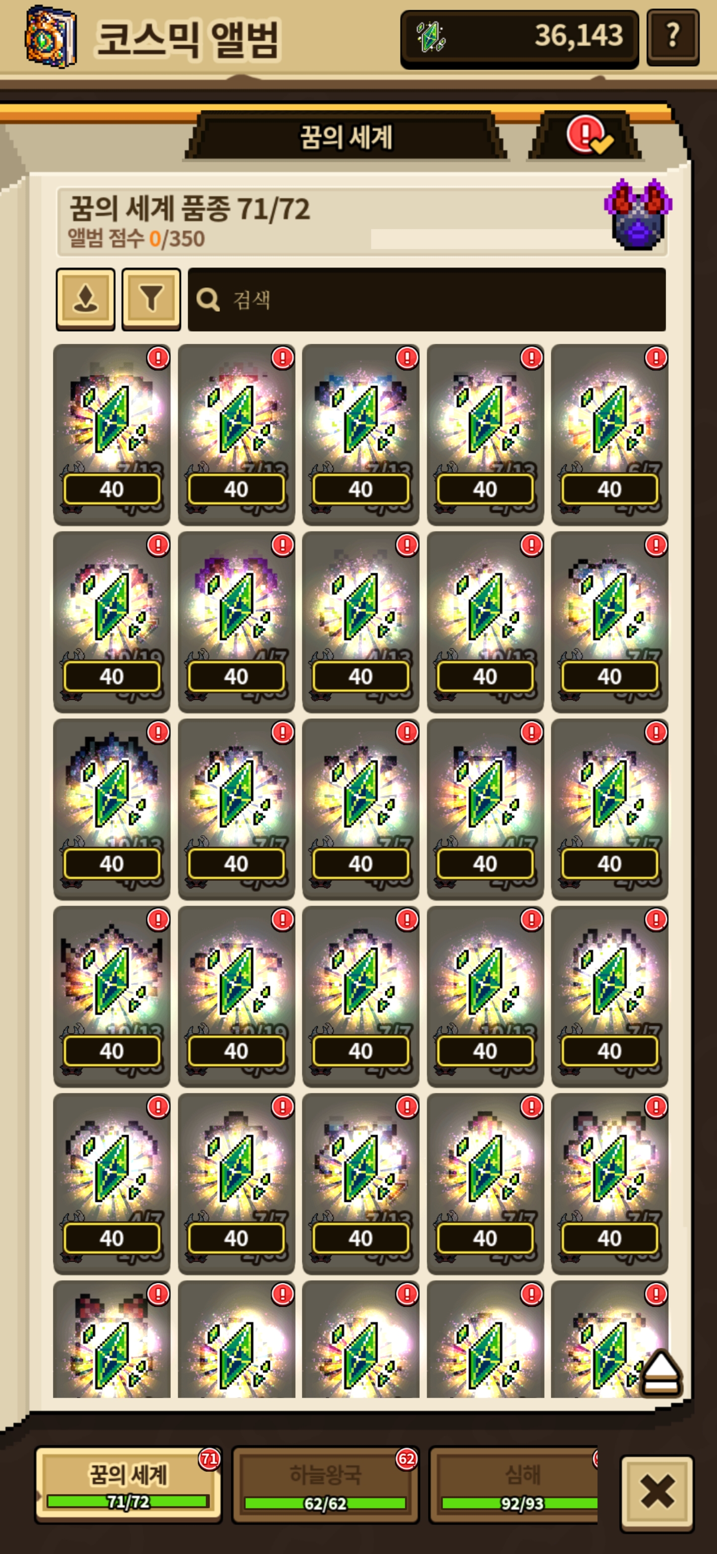 2. 코스믹결정 40개씩 알림이 뜹니다.
