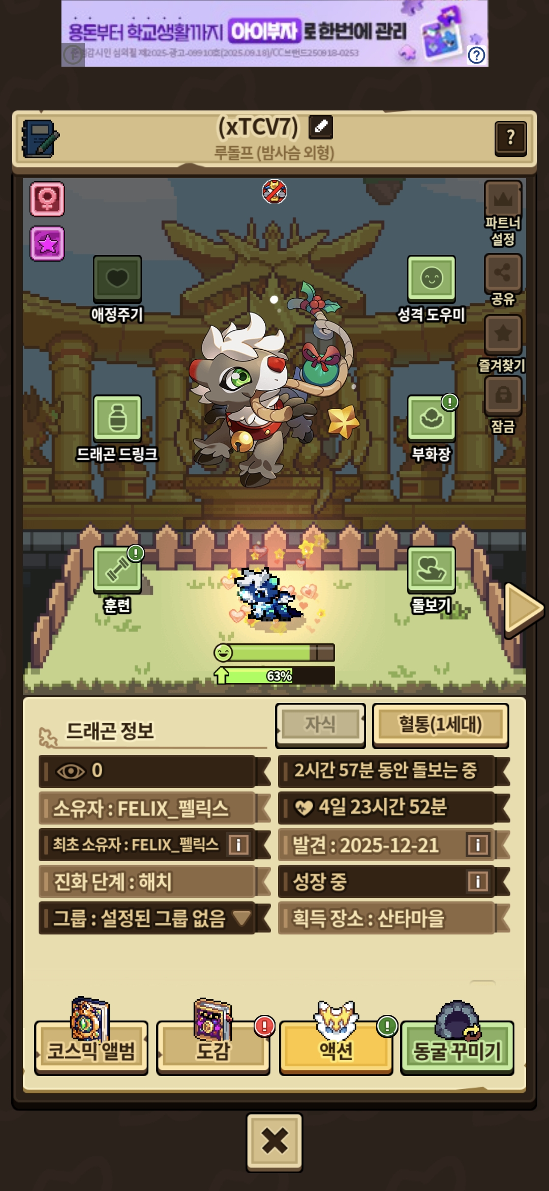 못 받았습니다,분명 밤사슴 루돌프 암컷을 얻었는데 말이죠.