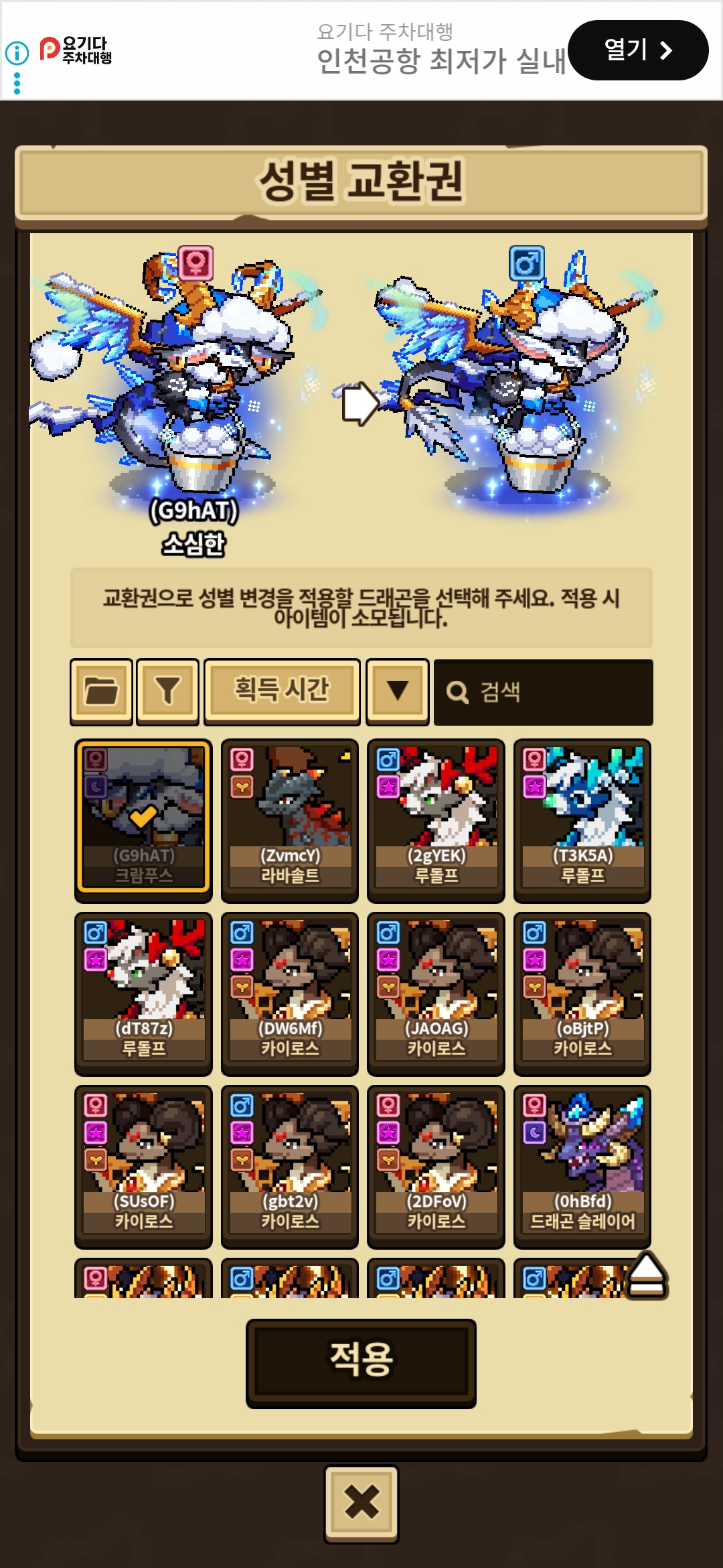 아래사진과 같이 크람푸스에게 성별교환권이 사용되네요,, 수정 부탁드립니다!