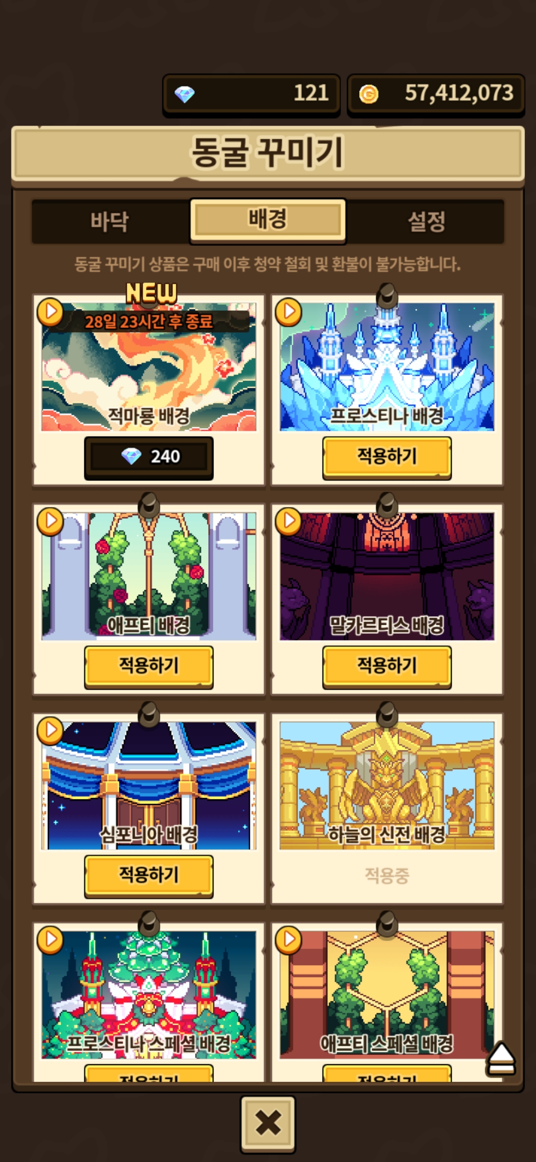 해당 사진처럼 적마룡의 동굴만 구매가 가능하며