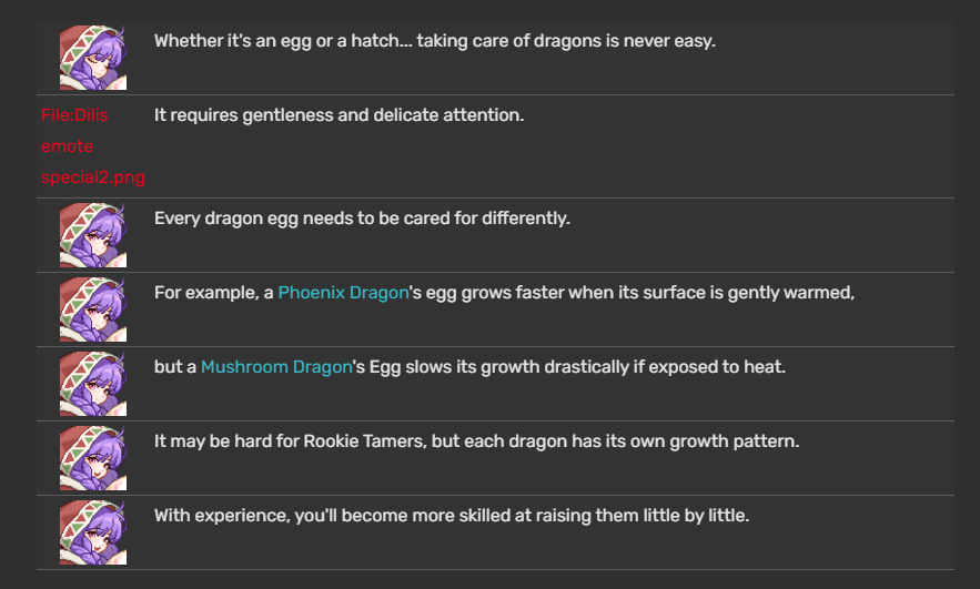 이 오류가 발생하는 한 가지 예는 유리아에게 말을 걸고 "점술집은 뭐하는 곳이에요?"라는 대화 옵션을 선택했을 때입니다. 유리아가 "그 예지력 때문에 어릴 적부터 온갖 고난을 겪었죠..."라고 말할 때 애니메이션 상태는 'sad'로 설정되지만, 해당 애니메이션 상태가 존재하지 않기 때문에 유리아의 표정은 변하지 않습니다. 이 문제에 대한 몇 가지 예시를 첨부했습니다.