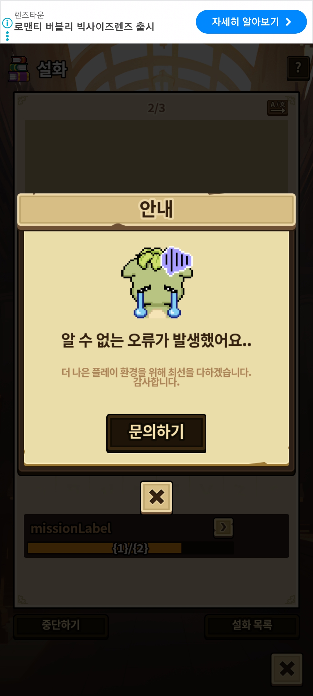 설화창에 들어가면 계속 튕겨요