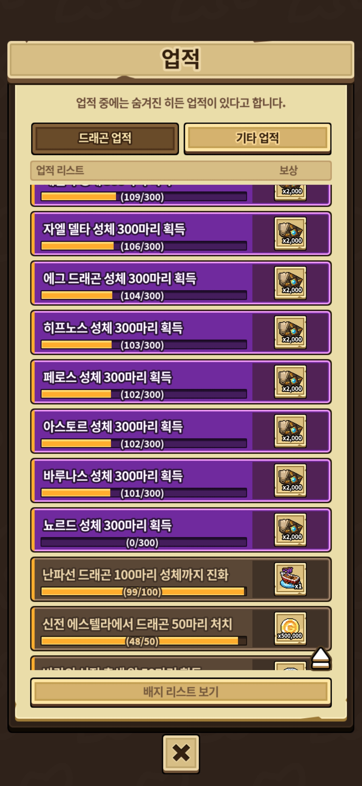스카디 300마리 업적이 나와야 할 것 같은데, 마릿수도 0마리고 뇨르드로 표시되네요