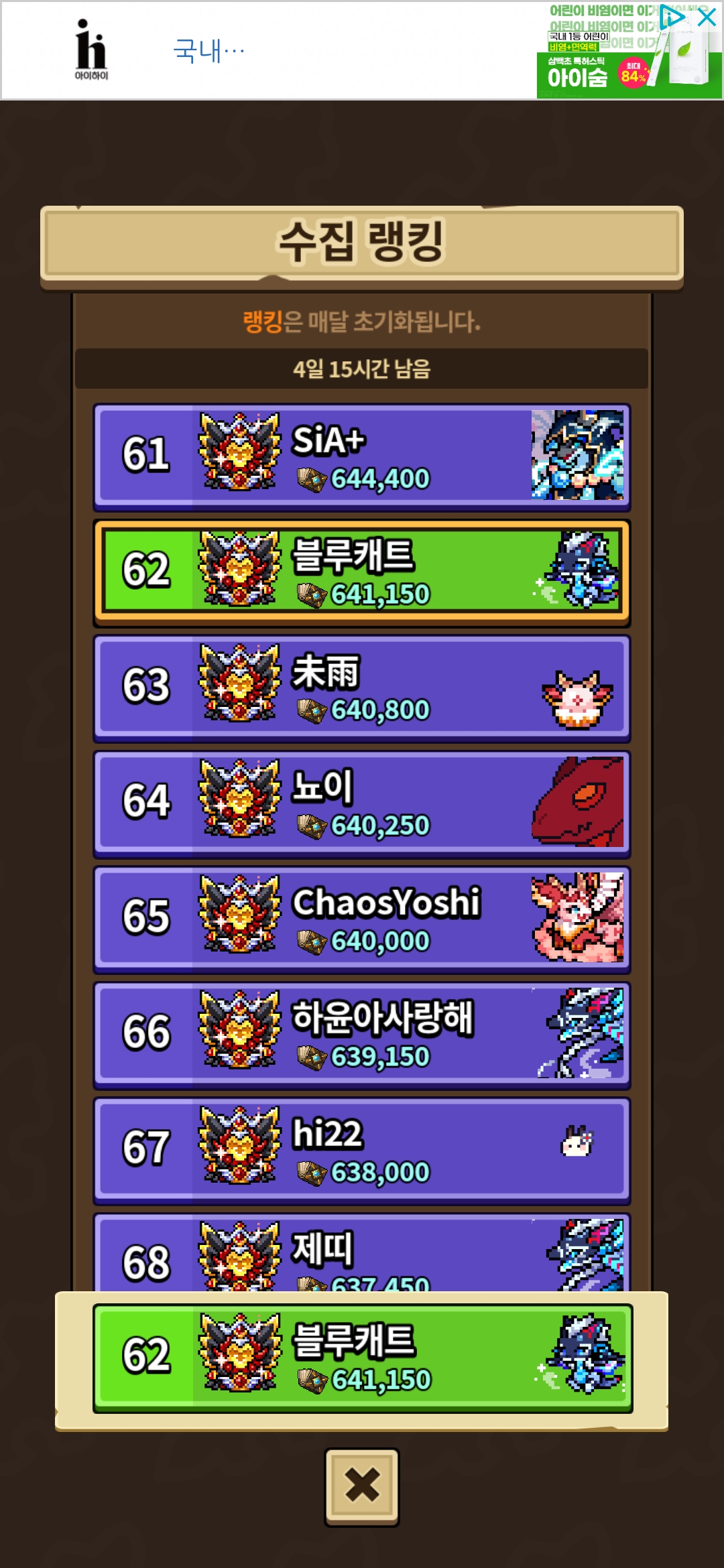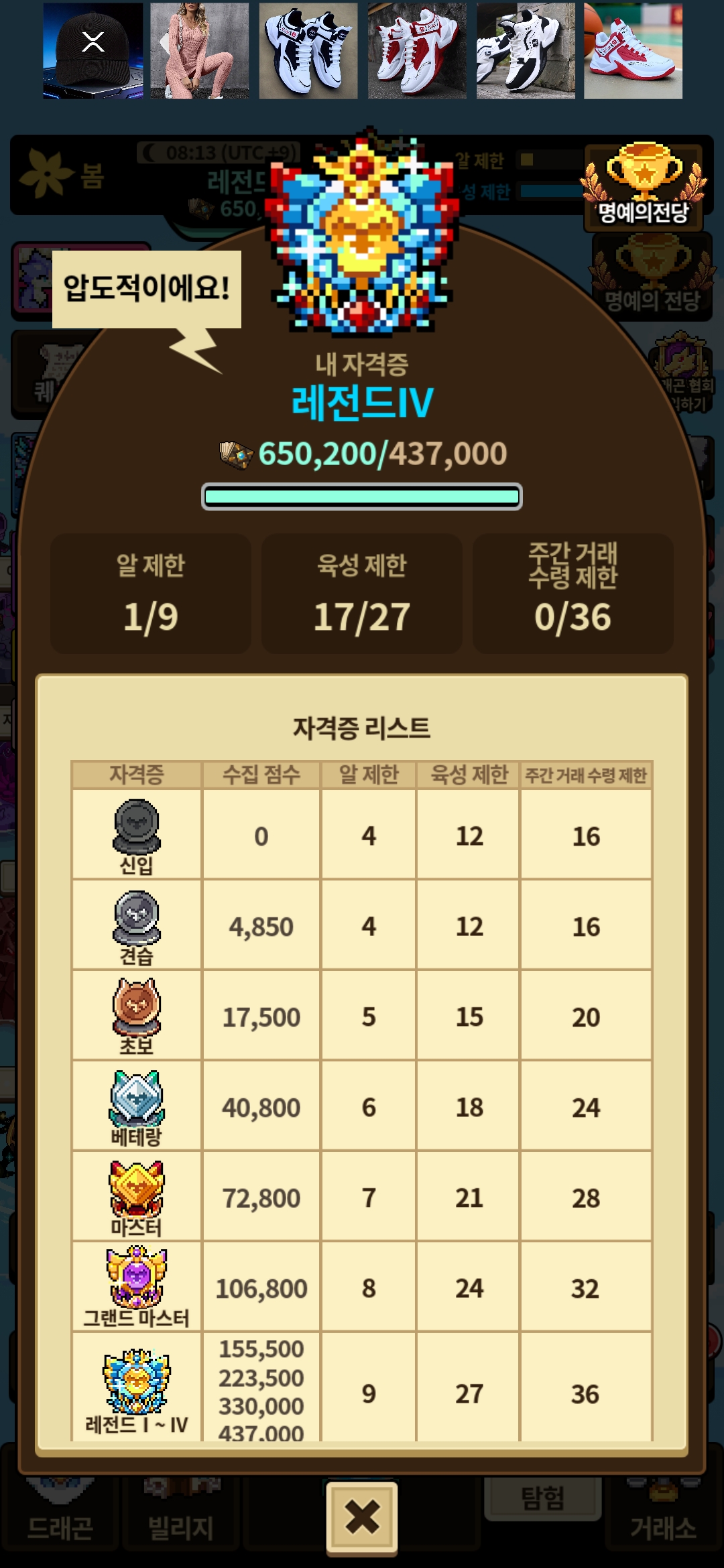 분명히 명예전당에는 62위로 표시되는데 어째서인지 레전드로 바뀌었어요
