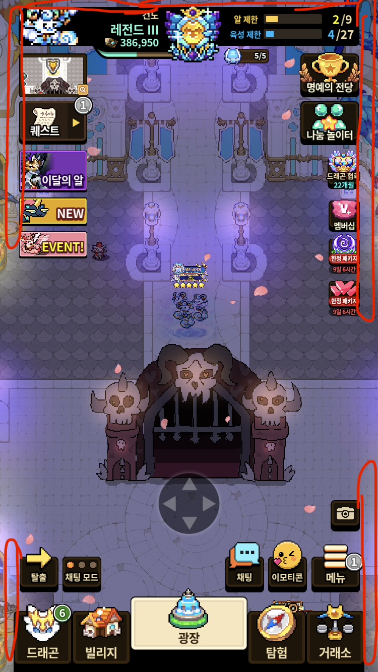 시야를 제한하고,광장에서 드래곤 확대나 축소가 되지 읺는 문제가 발생히였습니다..밑 사진이